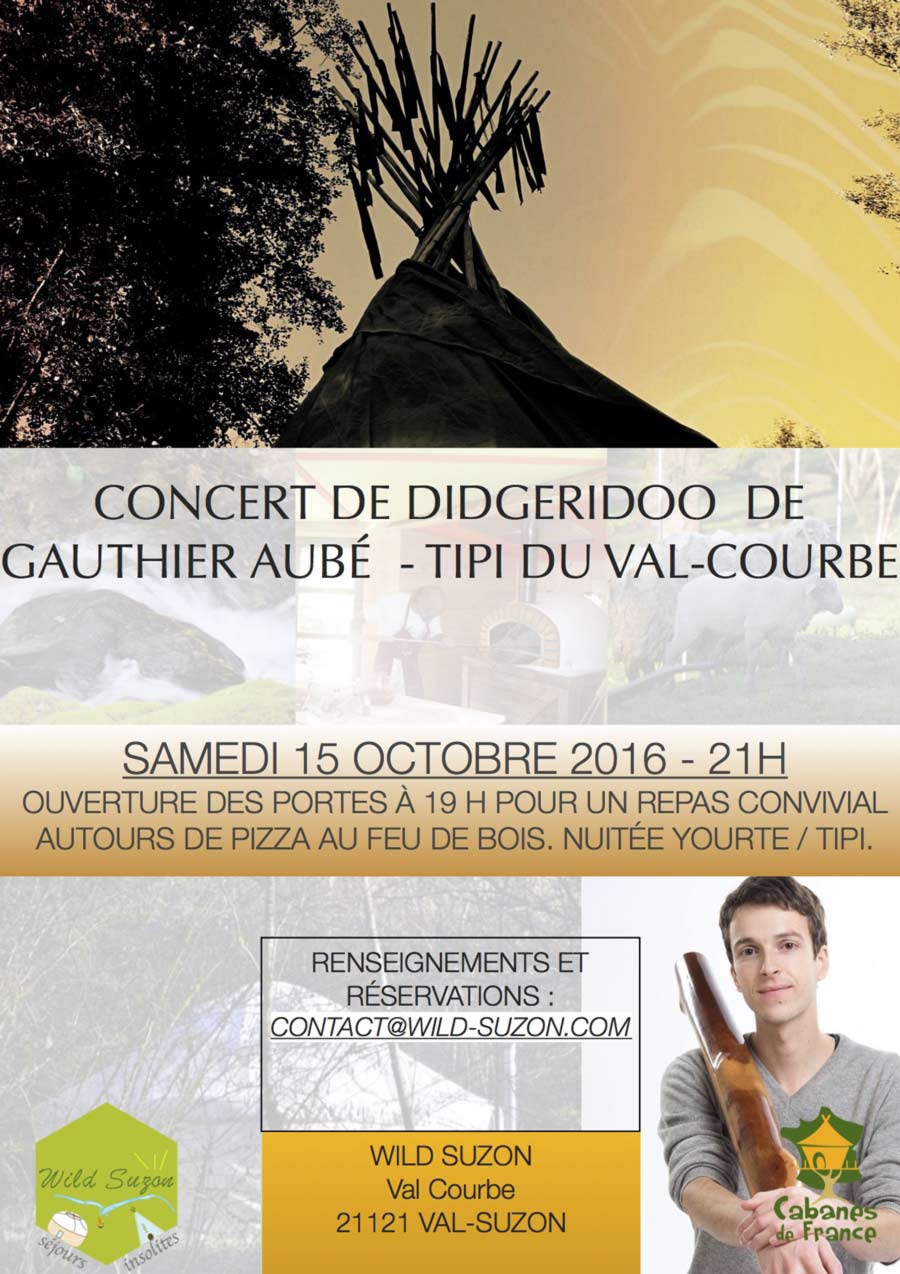 Wild Suzon en Côte d’Or accueille Gauthier Aubie le samedi 15 Octobre pour un  concert de didgeridoo