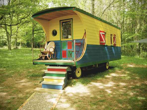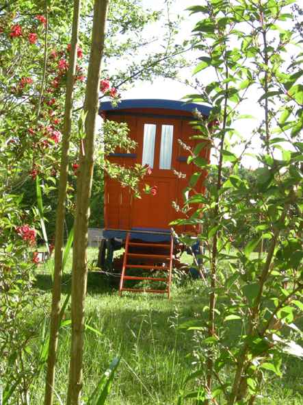 Bénéficiez de trois roulottes sur 1ha de terrain pour une seule location à Donzy dans la Nièvre (Bourgogne) : une roulotte avec cuisine équipée, eau chaude, plaque de cuisson, frigo, table, lit double + une roulotte chambre double + une roulotte salle de bain + une roulotte avec un lit d’appoint (un adulte ou deux enfants)