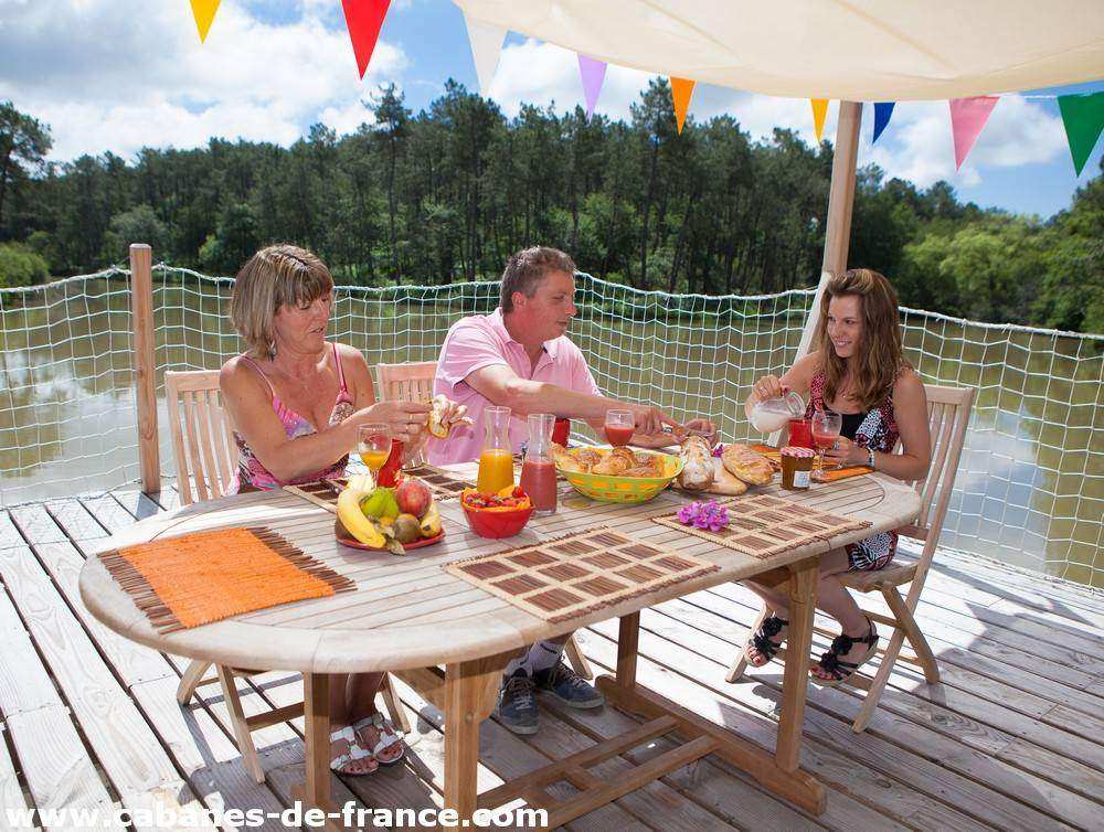 Spacieux avec ses 30 m², notre chalet flottant est coiffé d’une grande terrasse de 30 m², avec voile d’ombrage, un espace très agréable pour se prélasser et prendre ses repas. Il est équipé de grandes baies vitrées éclairant généreusement l’intérieur et créant un espace ouvert directement sur le plan d’eau pour mieux communier avec la nature et observer la faune sauvage.