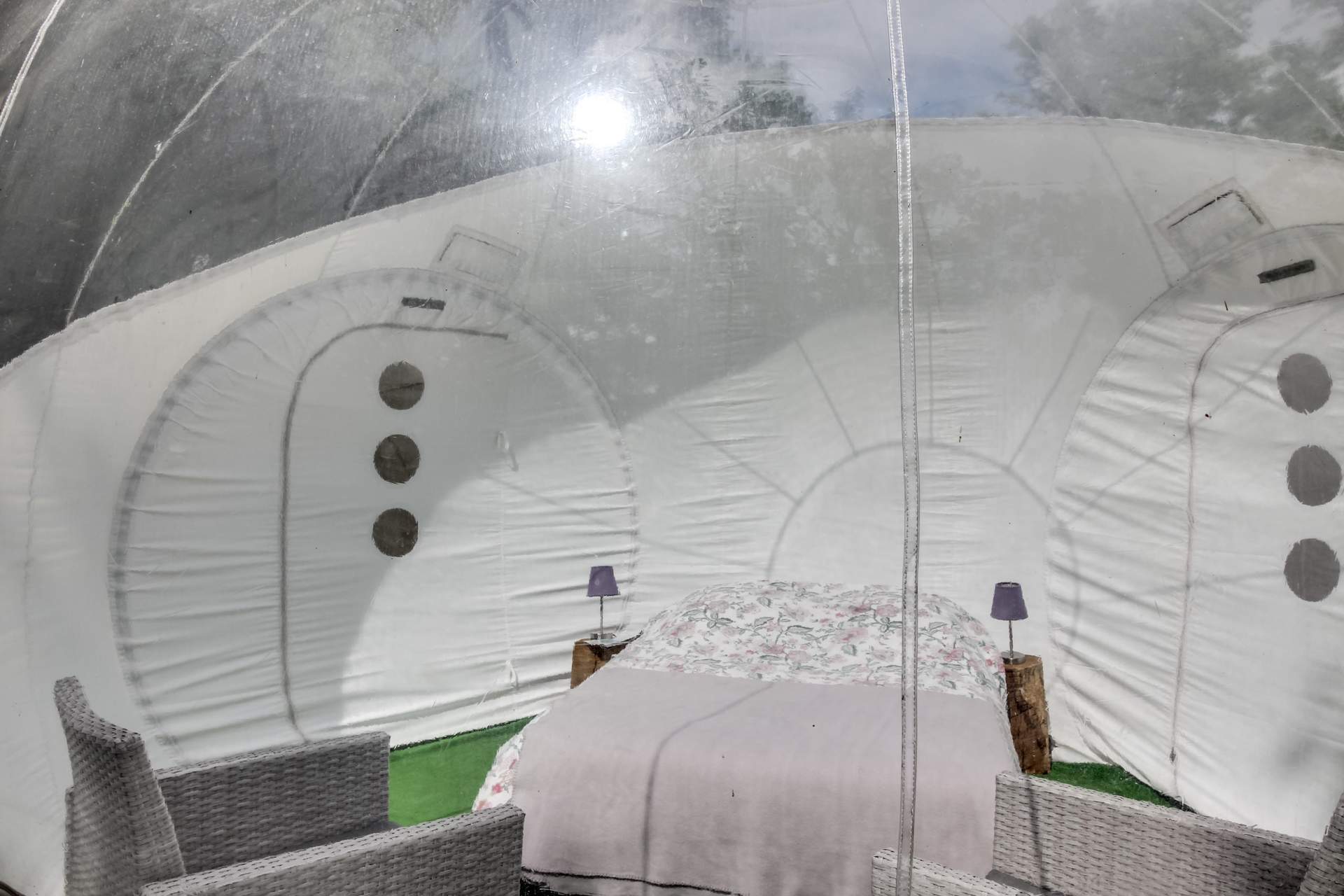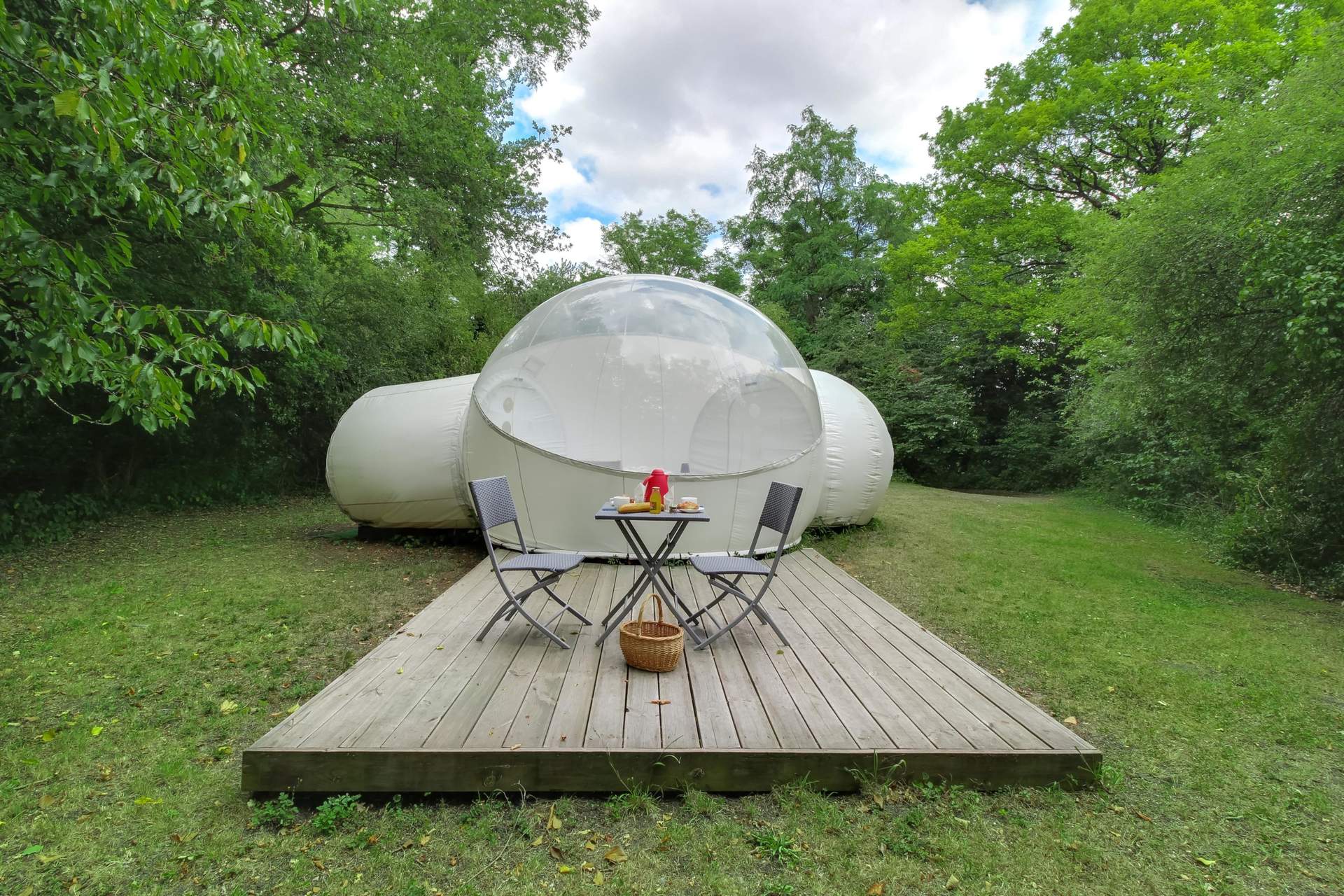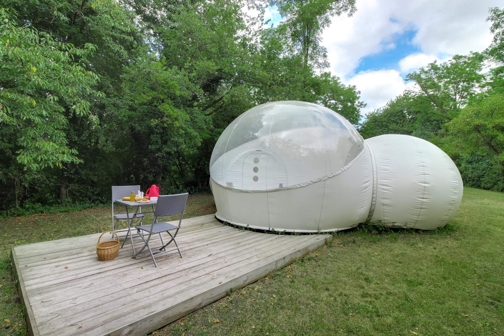 La bubble Star permet de passer une nuit à la belle étoile. C’est un espace d’hôtes plutôt insolite, ultra design, dans un environnement “glamping”. Ce confort décalé dans cet endroit verdoyant offre un spectacle céleste inoubliable. Composée d’un lit double douillet, cette bulle dispose d’un mobilier intérieur contemporain, de toilette sèche écologique, à l’électricité et dispose également d’une terrasse extérieure meublée où vous pouvez savourer petits déjeuners au réveil, dîner au clair de lune… tout est possible sur simple réservation.