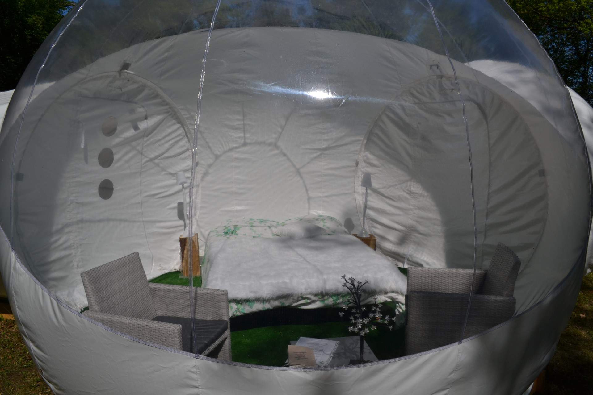Notre bubble Star offre un véritable spectacle céleste. Insolite, cette bulle l’est ! L’alliance du moderne en pleine nature à un charme que nos « bubbleman » aiment. Seul au milieu d’un site naturel verdoyant, vous y verrez étoiles filantes, clair de lune, levée de soleil… chevreuils pour les plus chanceux et nos adorables petites chèvres.
