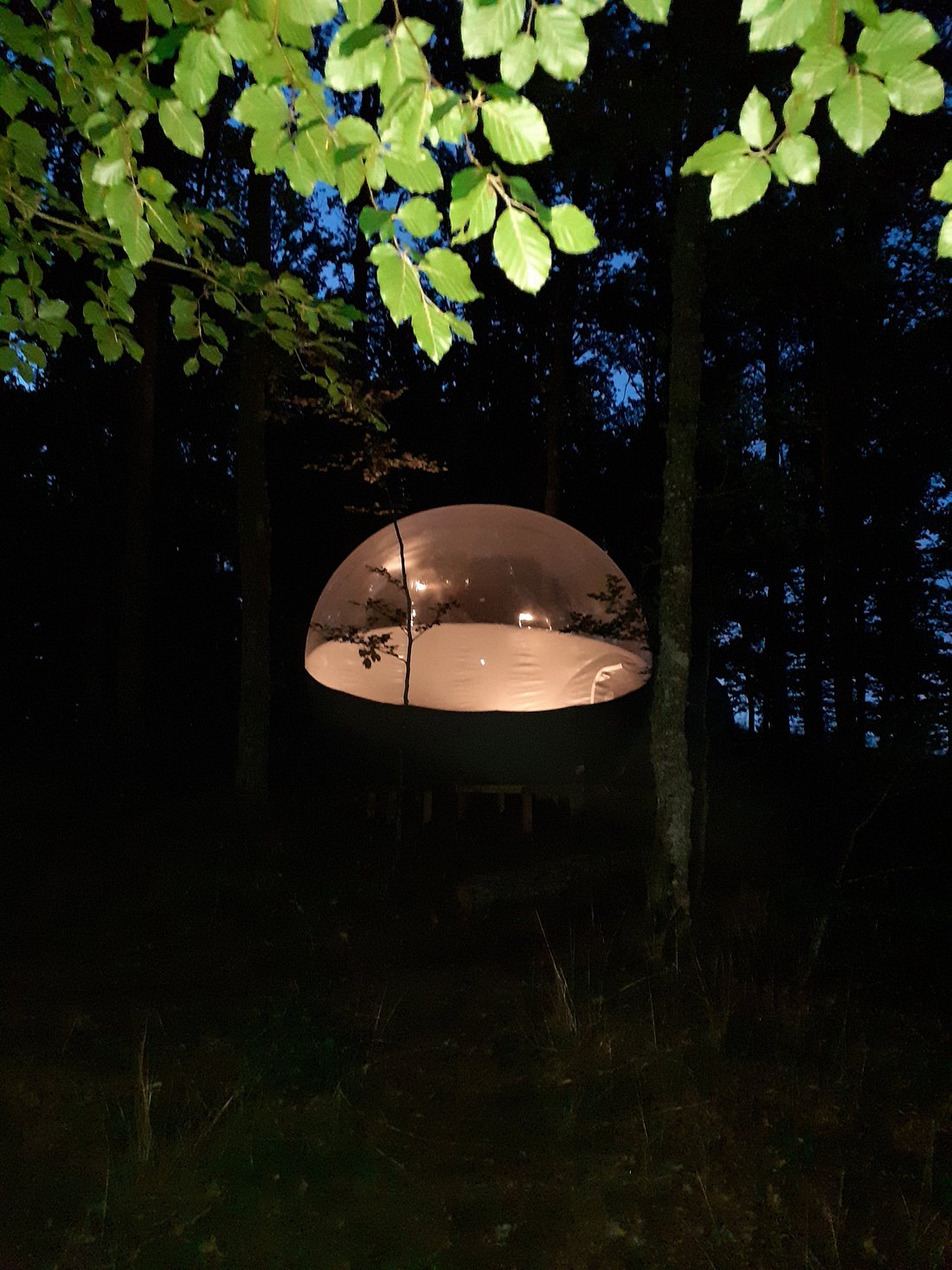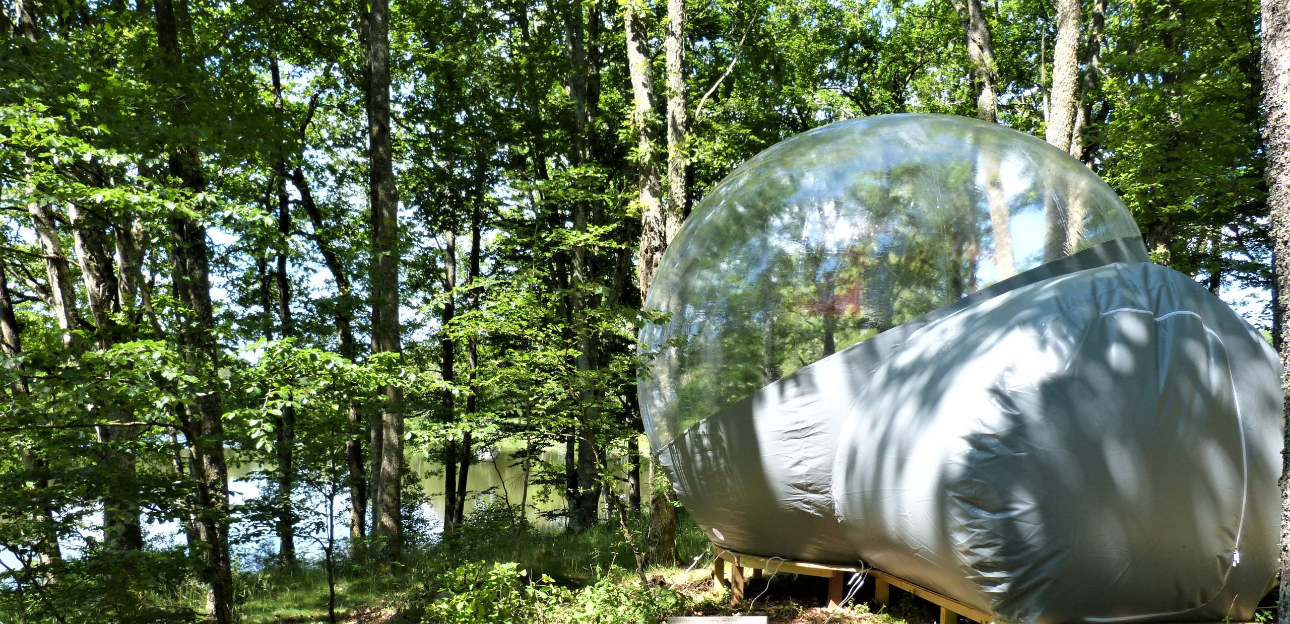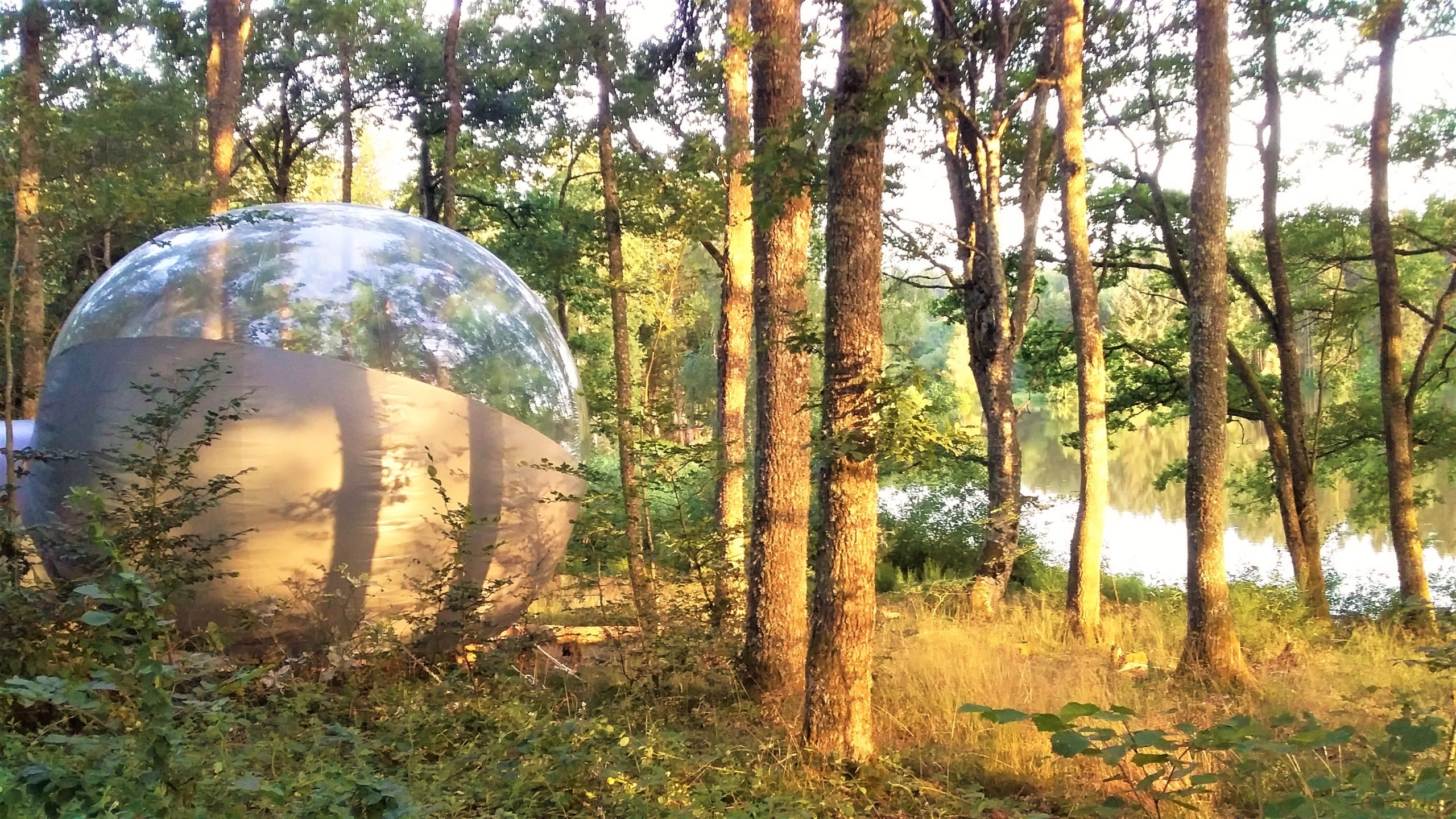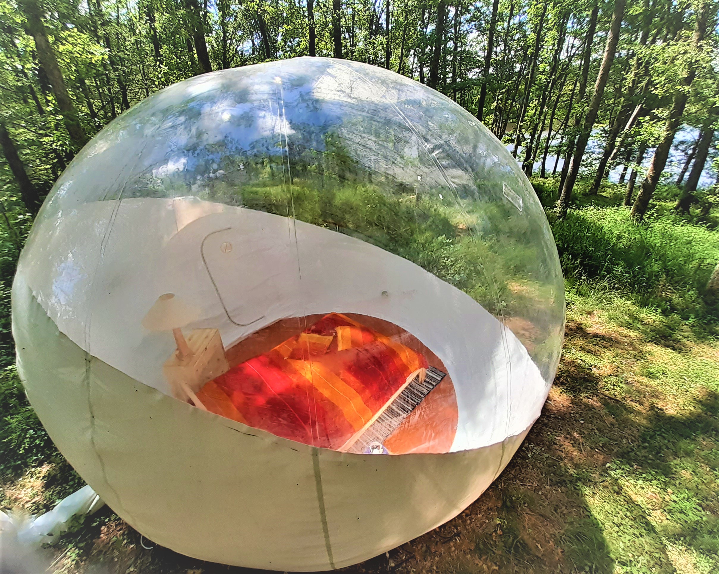 La Bulle gonflable, véritable petit cocon, offre toute la beauté du paysage extérieur, avec son dôme transparent : vue sur la nature environnante, tout en gardant le confort d’une chambre d’hôtel !