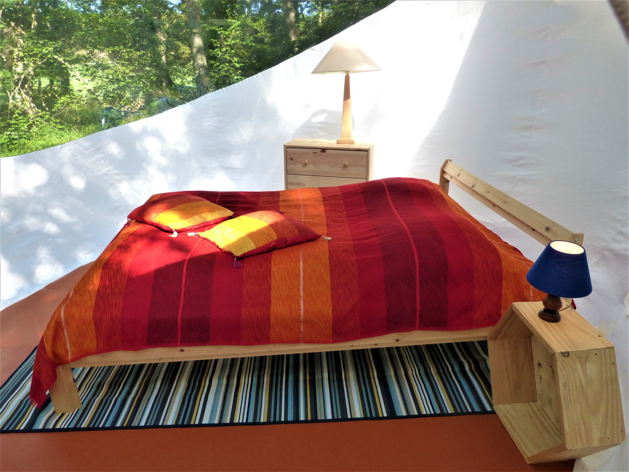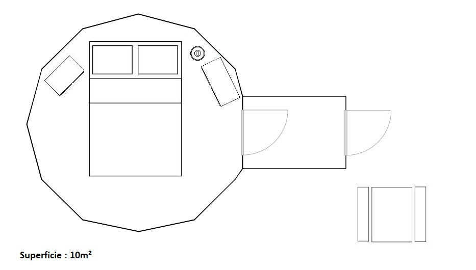 • Elle est équipée d’un lit double. Les couvertures et oreillers sont fournis, vous pouvez amener vos propres draps ou en louer à l’accueil pour 8€/lit.