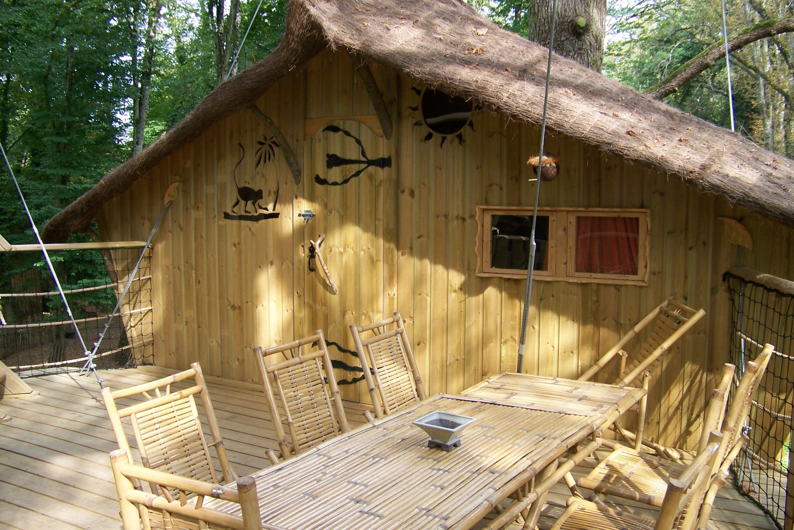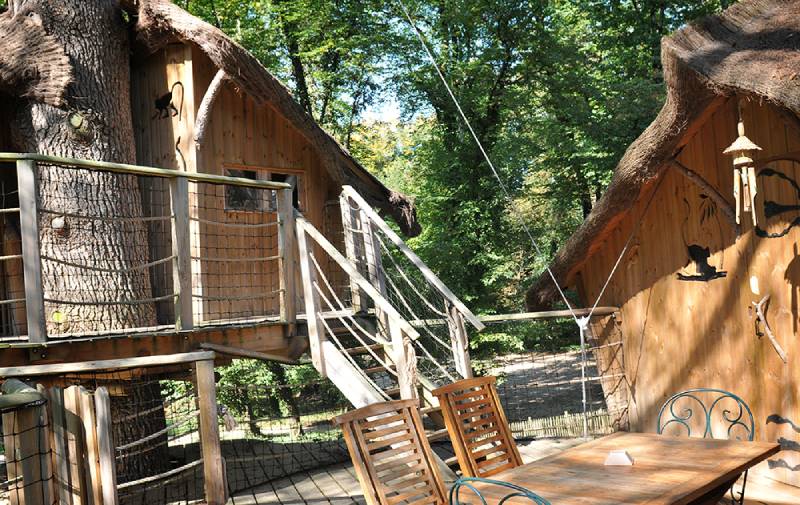 Située entre la roseraie et la mini-ferme, la cabane 6 personne, à 5 mètres de haut, est accessible par un escalier.