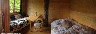 Soutenue par 2 hêtres au bord du lac, la Cabeun vous accueille sur une surface de 20m2 terrasse comprise. À 4 mètres du sol, on y accède par un escalier abrupt menant à la terrasse. Depuis la terrasse, équipée d’une table et de chaises, vous pousserez la porte de ce qui sera votre nid le temps d’une nuit. L’intérieur, traversé par un arbre, est équipé pour un maximum de 4 personnes. Les couchages sont répartis de la manière suivante : un lit double et deux lits gigognes. Réunis autour de la table de berger, vous profiterez de l’interieur cosy de la Cabeun. Un cabinet de toilette sèche est à votre disposition à l’intérieur de la cabane si vous ne souhaitez pas utiliser celui du bloc sanitaire commun à l’extérieur. Deux douches, dans le bloc sanitaire, sont réservés exclusivement aux usagers des hébergements. Le petit déjeuner vous sera servis sur la terrasse de la cabane. La Cabeun n’étant pas pourvue d’électricité, nous vous remettrons des lampes frontales, afin de pouvoir vous diriger lorsque les lumières de la plage seront éteintes. Vous disposerez également des clés de votre hébergement ainsi que des codes d’accès au site si vous souhaitez poursuivre votre soirée en dehors de la plage.