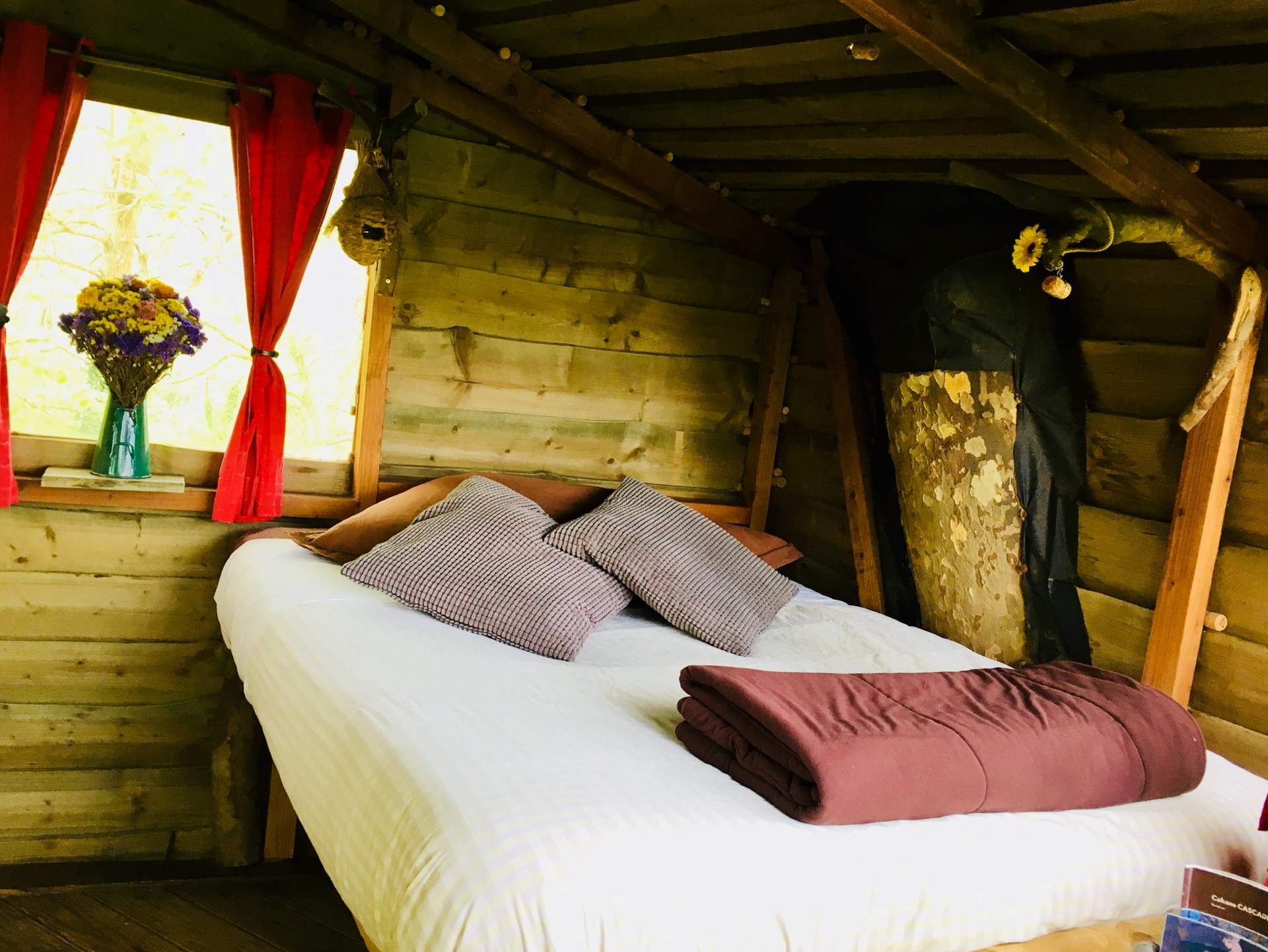 Branchée à 16 m du sol dans la main d’un platane d’Orient de 250 ans penché au dessus d’une cascade d’eau de source