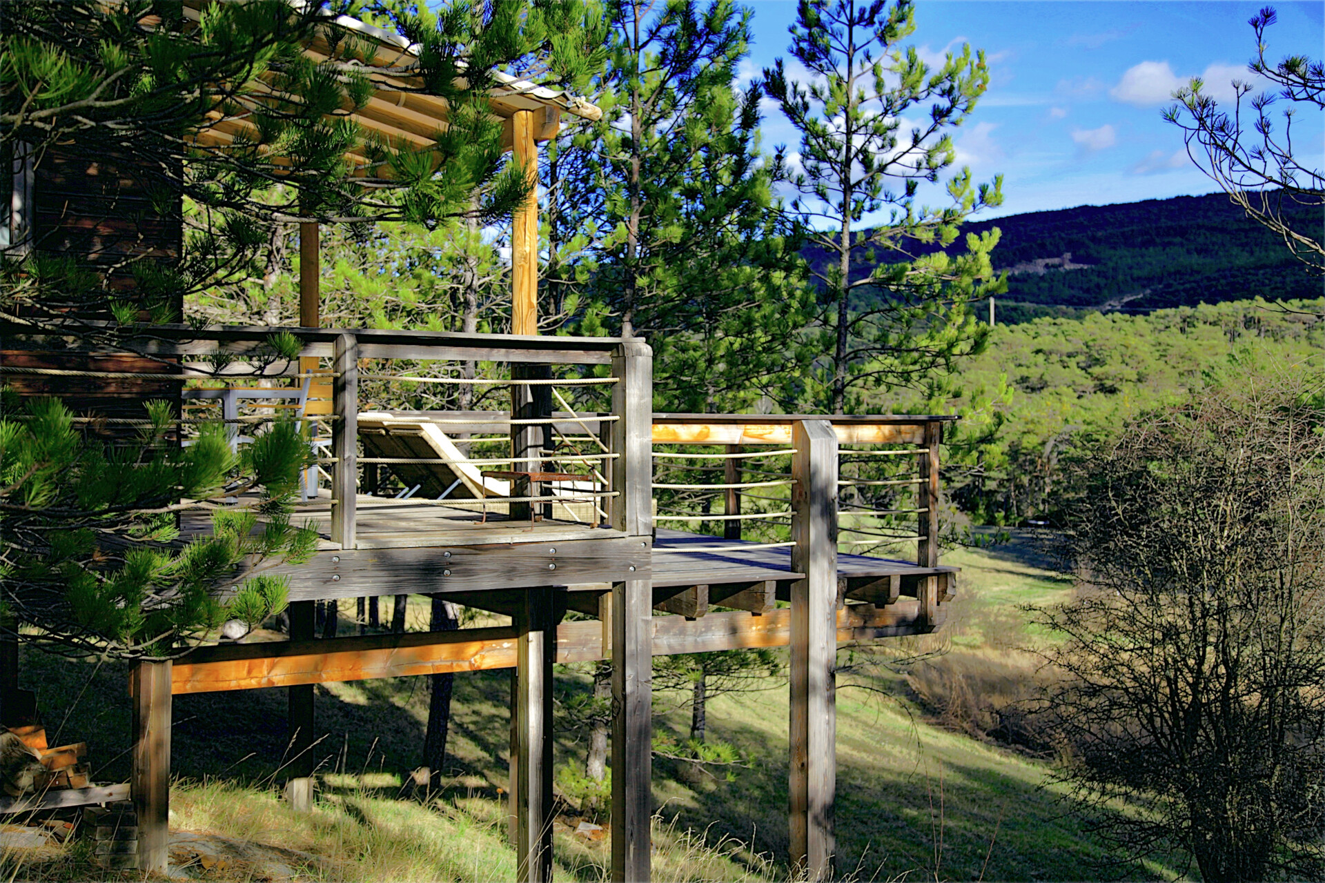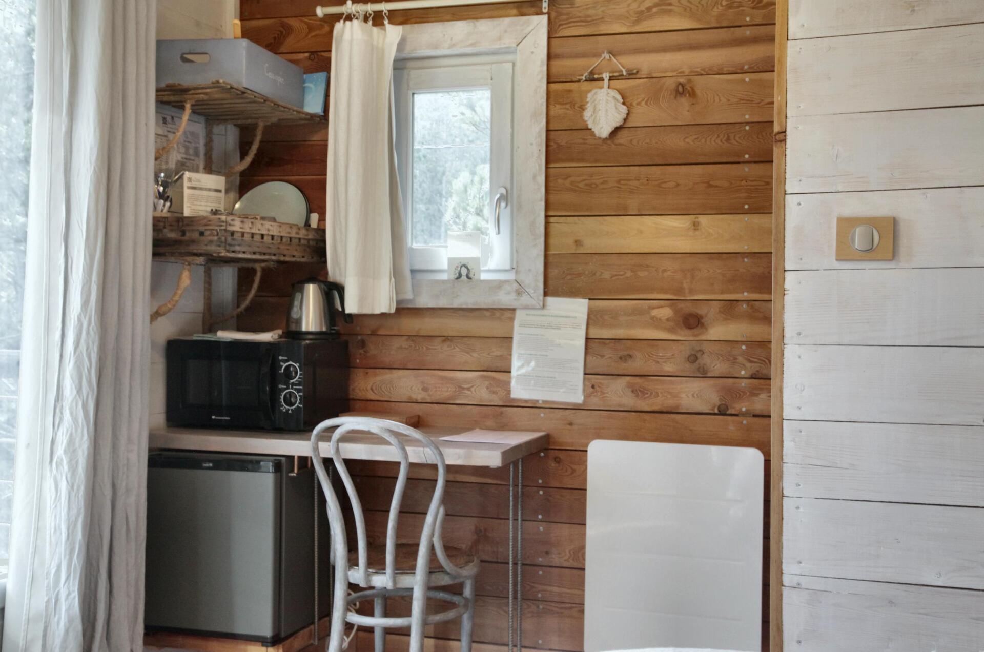 Plongez dans l’ambiance naturelle et sauvage de la Provence depuis la Cabane d’hôtes “Cassiopée”.