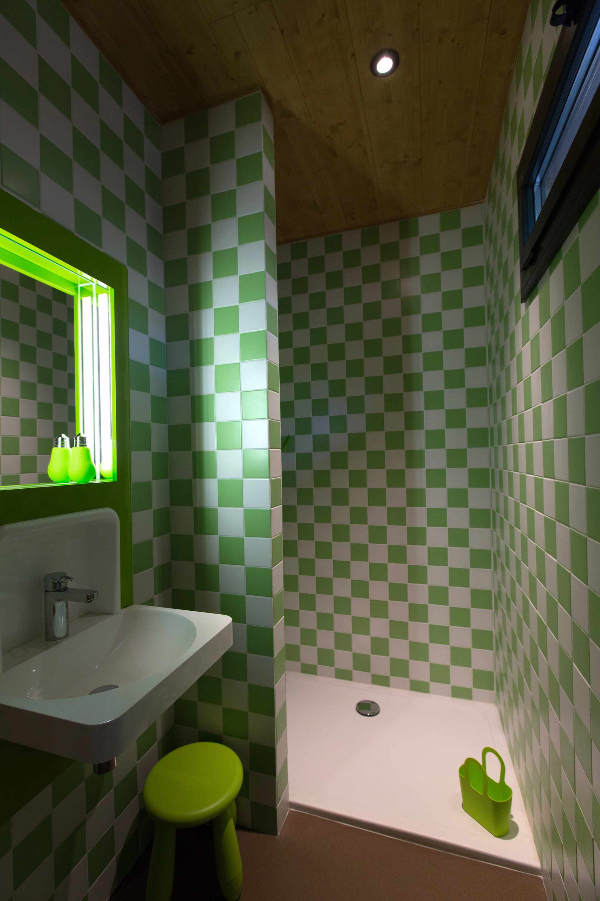 • Une salle de bain avec douche 80×120, et meuble vasque.