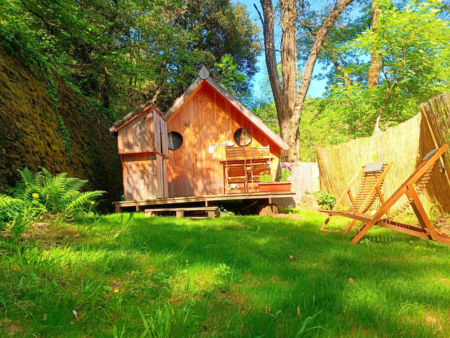 La cabane Comballe est perchée sur une terrasse Cévenole, pour une intimité totale, idéale pour les couples ou les familles. Ce modèle surplombe le camping, l’accès se fait par un petit chemin en pente sur quelques mètre. Elle offre beaucoup de confort avec toilette et douche, 2 lits dans l’entrée et une chambre parentale au fond avec un grand lit en 160, avec matelas confort en latex. En terrasse vous profitez d’une cuisine d’été et d’un salon de jardin (réfrigérateur, gaz, ustensiles de cuisine, cafetière à piston…). L’accès à la rivière du Luech se trouve à quelques pas de votre logement insolite.