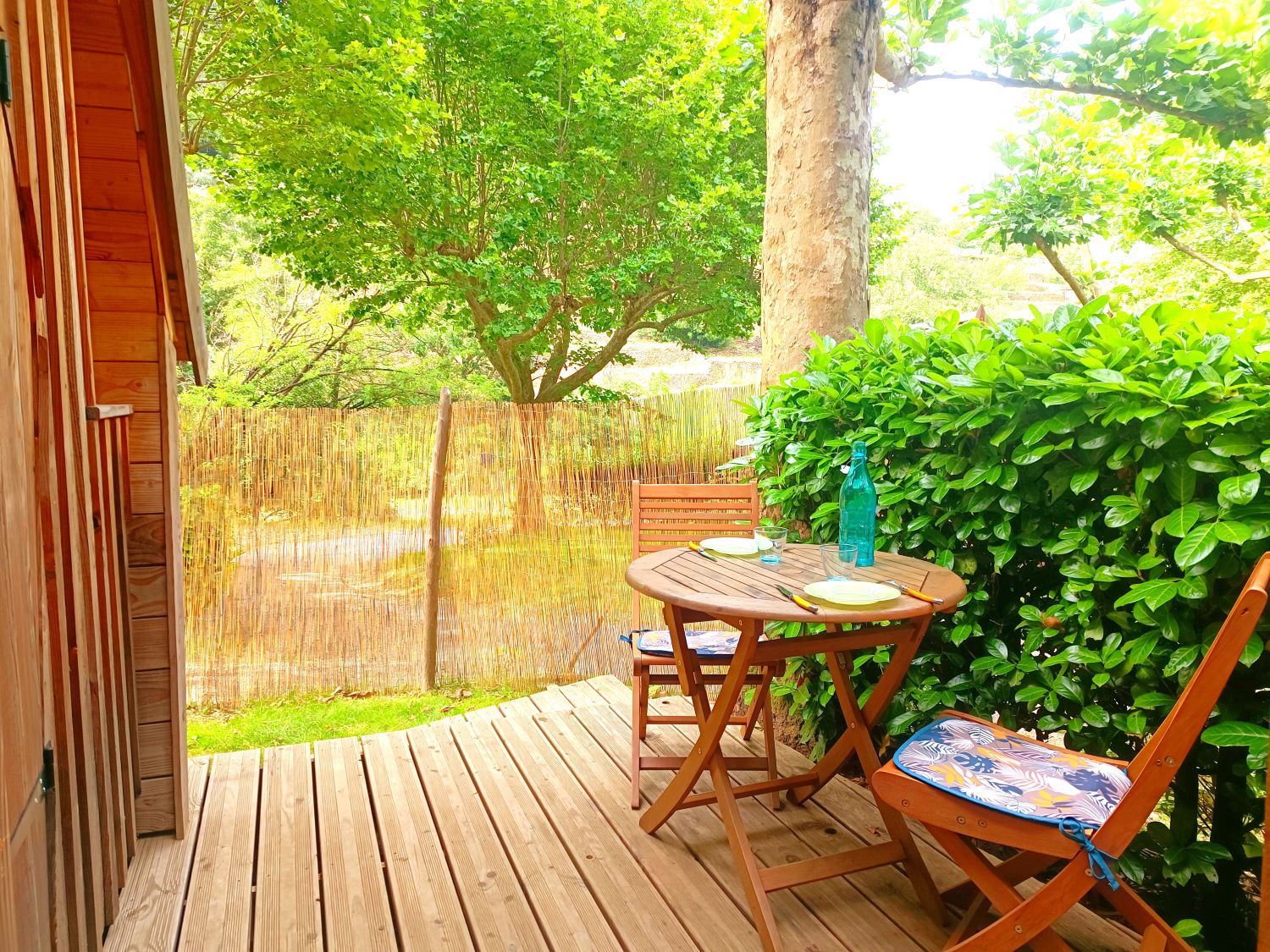 La cabane Figarette est parfaite pour les petites familles, avec son lit en mezzanine pour un enfant et un grand lit en 160, avec matelas confort en latex. Une petite terrasse à l’ombre des platane avec vue rivière vous garantie des soirées conviviales. Pour vos repas une cuisine d’été et un salon de jardin vous offre tout le nécessaire (réfrigérateur, gaz, ustensiles de cuisine, cafetière à piston…). Les sanitaires sont communs à proximité directe de votre logement. L’accès à la rivière du Luech se trouve à quelques pas de votre logement insolite.