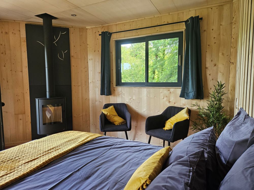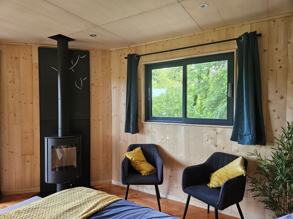 Profitez d’un moment d’évasion avec cette cabane. Elle est isolée, possède sa douche et éclairée par panneau solaire. Grâce à son poêle à bois, vous pourrez profiter lors des soirées d’hiver. Vous aurez peut-être la chance d’apercevoir les chevreuils dans la prairie située en dessous de la cabane. Un moment d’évasion, au calme, en pleine nature.