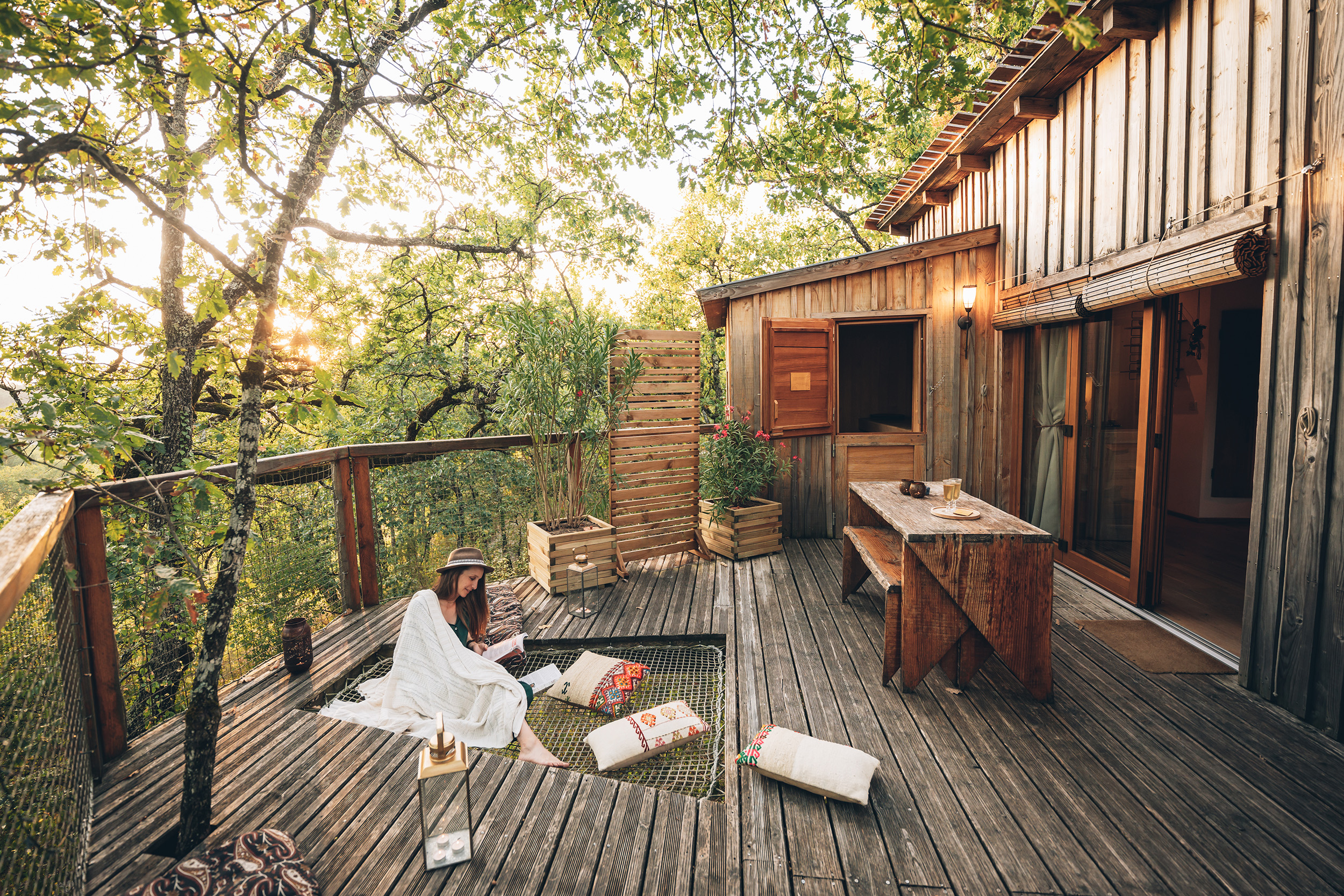 Cabane Spa 1 : une cabane dans les arbres avec spa privatif et sauna entre Toulouse et Bordeaux