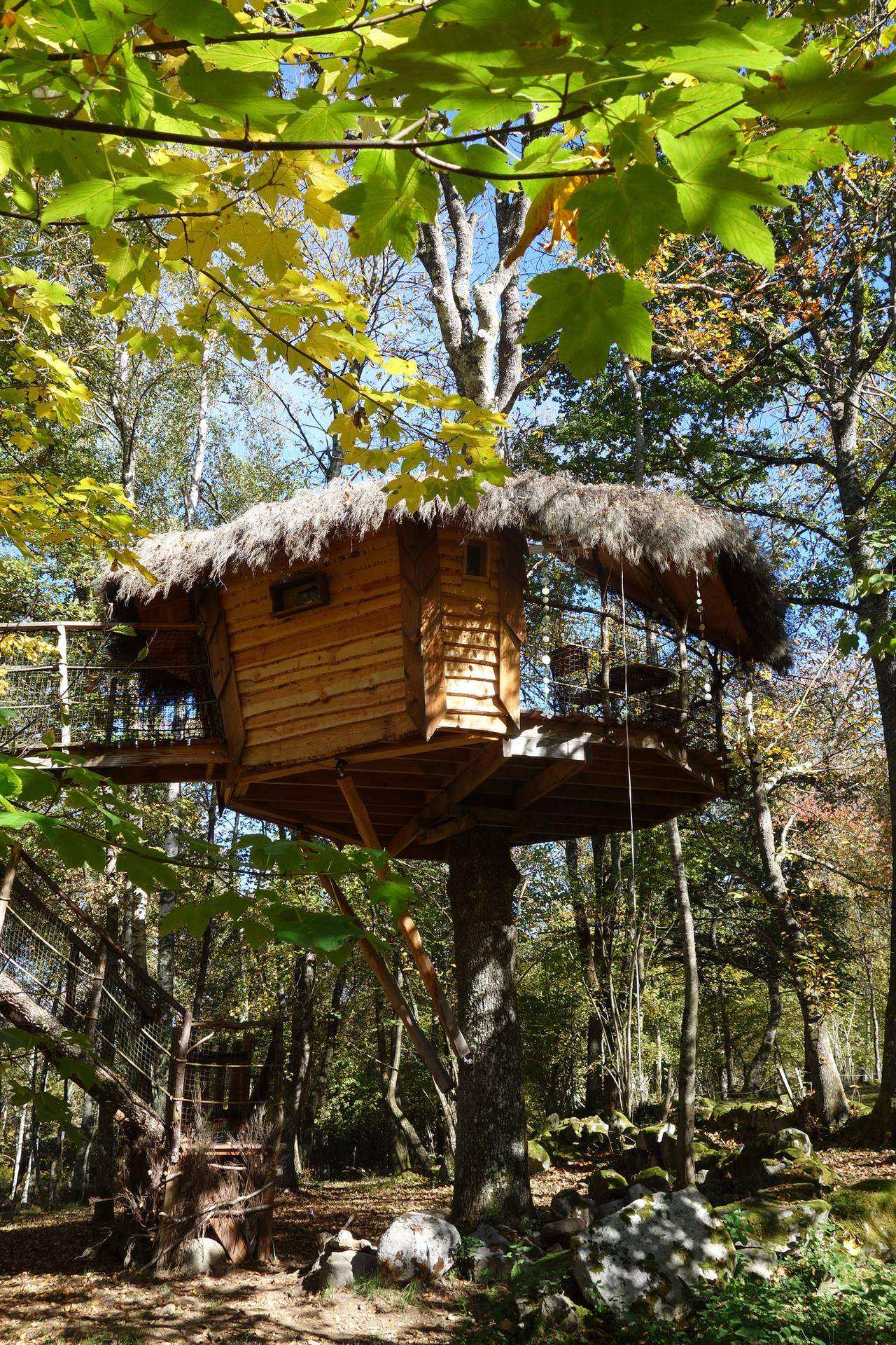 Un lieu féérique et intemporel à la cime des arbres et au cœur des Pyrénées. Immersion tout confort en pleine nature avec 3 cabanes perchées dans les arbres louées à la nuitée et 2 gites insolites extraordinaires au milieu d'une clairière bordée par un ruisseau qui serpente entre mousse et granit, observatoires uniques sur les biches, cerfs et autres animaux des sous-bois, un bain nordique avec vue sur les montagnes pour la détente et un kota grill finlandais pour des repas conviviaux et dépaysants