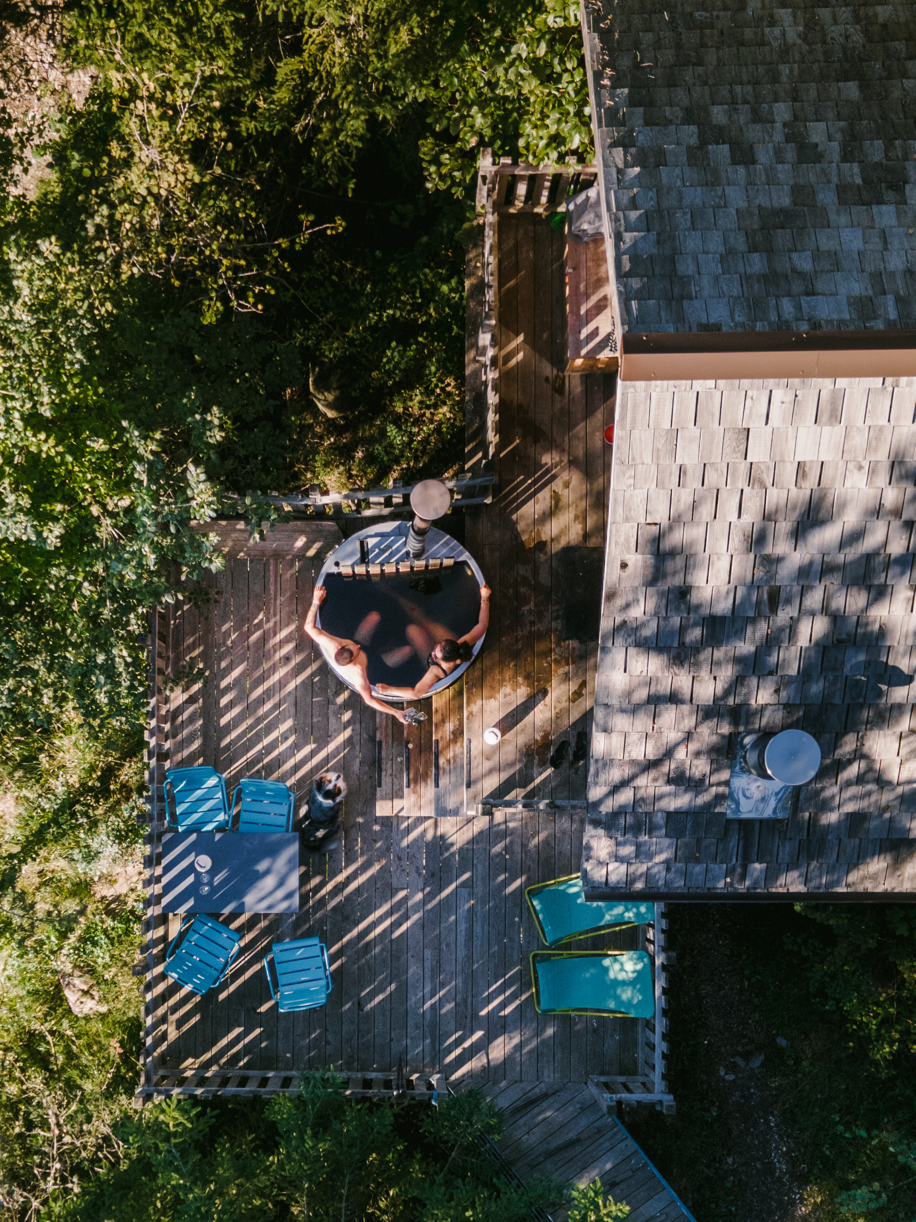 Passionnés d'activités de pleine nature et de solutions autonomes, nous avons créé cinq cabanes dans les arbres, nichées à 4 mètres de hauteur, dans une forêt de pins et de hêtres au-dessus du lac de La Thuile en Savoie. Chaque cabane perchée dispose d'un bain nordique privatif, d'une architecture et d'un emplacement unique. De quoi retrouver l'essentiel pour passer un moment à deux ou en famille Convaincus qu'il est nécessaire de ralentir et de changer nos modes de consommation, nous essayons de réduire au maximum notre impact sur la nature et de mettre en oeuvre les principes du développement durable : respect de l'environnement et des équilibres sociaux.