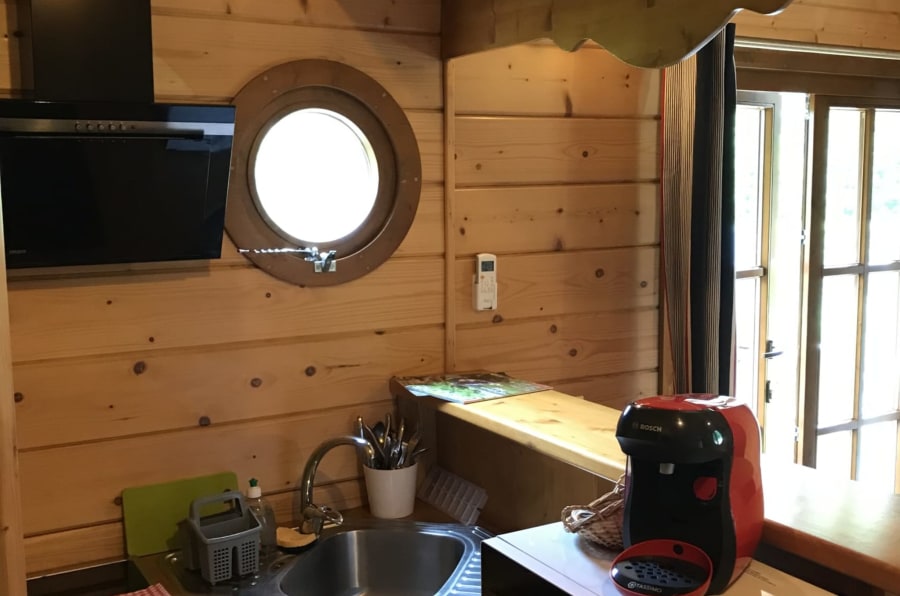 La Cabane de Sam est une véritable maison de 27 m² qui incarne la liberté et l’harmonie avec la nature, dont l’agencement intérieur rappelle le décor d’un bateau en bois avec son carré, et ses cabines. Cette cabane insolite permet aux familles de trouver un ancrage au coeur de la nature avec une terrasse pour une détente absolue.
