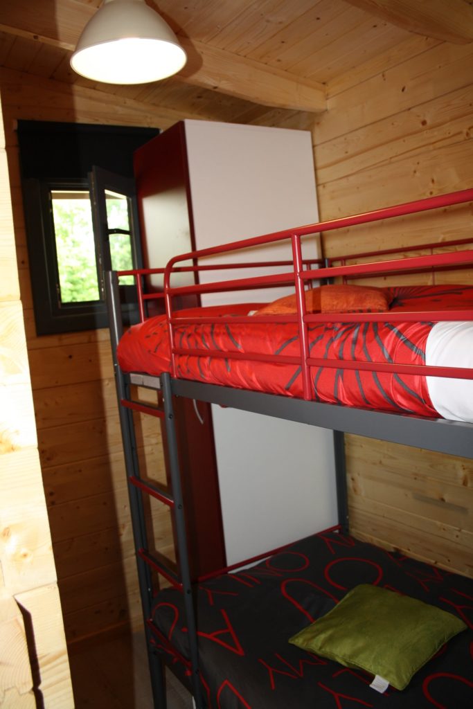 Une chambre avec un lit double et une chambre avec lits superposés composent l’espace nuit. Dans la grande pièce de vie, le canapé lit offre un autre double couchage.