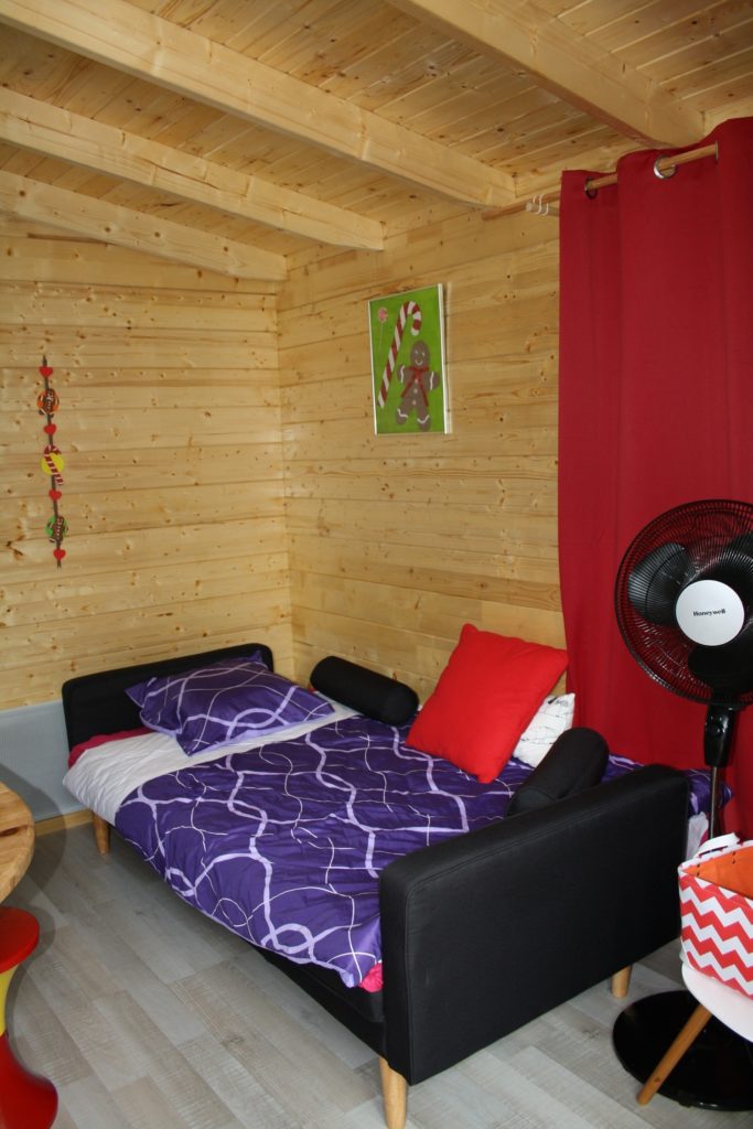 Pas moins de 25m² intérieur et 13m² de terrasse vous attendent ! Son intérieur tout en bois vous rappellera les cabanes de votre enfance !