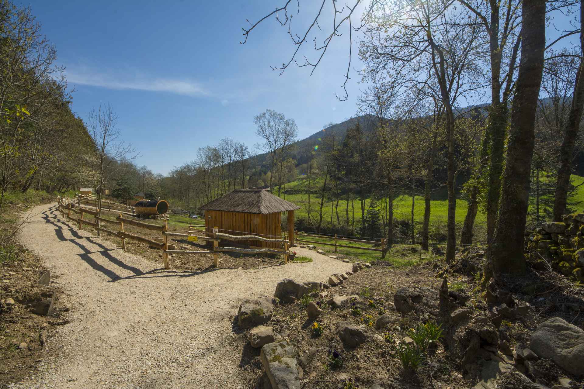 La cabane est chauffée et équipée avec tout le confort : électricité , poêle à granulés pour les soirées d hiver qui peuvent être un peu froides , douche avec eau chaude ,toilettes sèches , coin petit déjeuner dans la cabane ,ou sur la terrasse quand le temps est agréable.