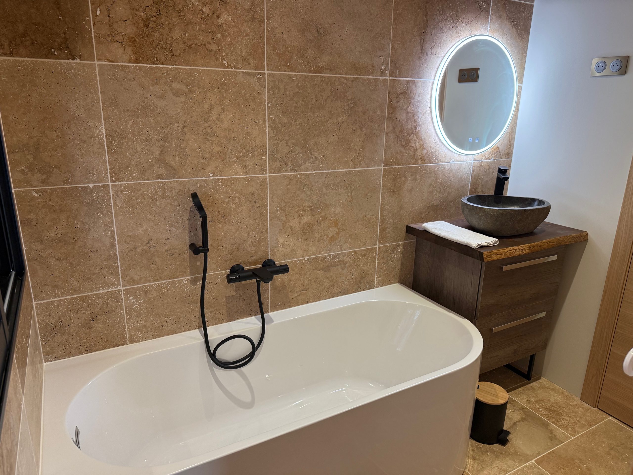 Accessible par un ponton, vous pourrez profiter d’une barque à votre disposition pour vous balader sur l’étang. La cabane dispose d’une salle d’eau avec douche et baignoire, un WC séparé, pas de cuisine mais un petit frigo à disposition.