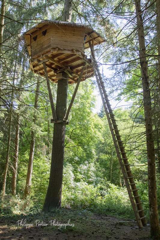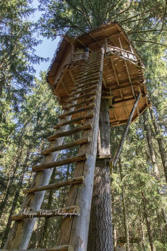 La cabane Falbala est situé à 9 m de haut sur un douglas.