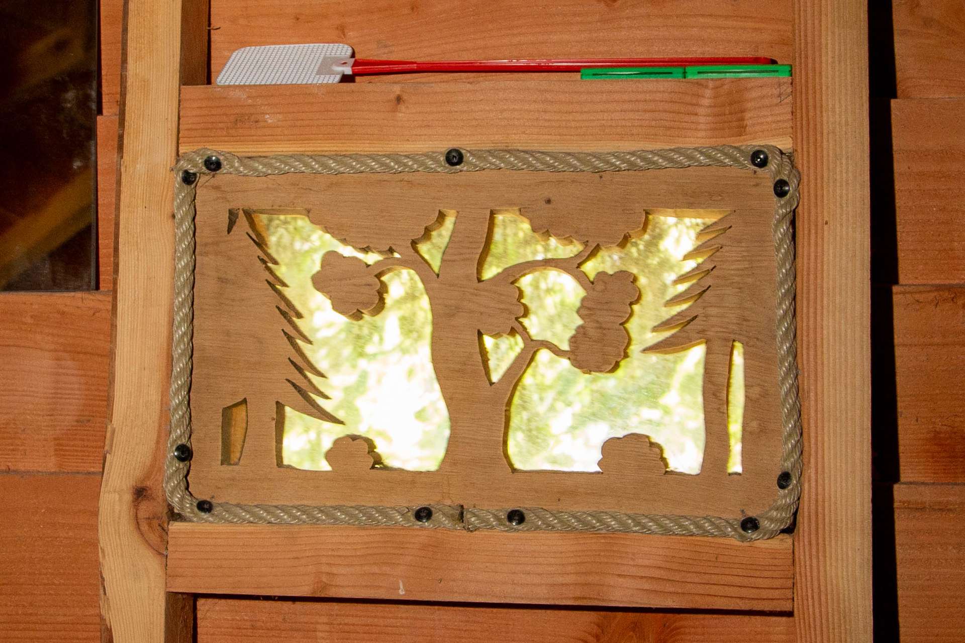 L’accès au départ  du chemin par une passerelle rigide est facile pour les plus petits. Nous profitons ensuite du dénivelé pour arriver à une hauteur de plus de 3m sur la terrasse.