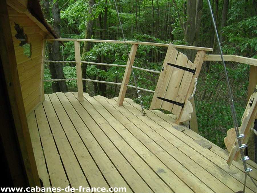 De la terrasse vous aurez peut être la chance d’apercevoir des chevreuils qui fréquentent cette partie de la forêt. L’accès à la cabane se fait par une très belle échelle à crinoline facile à gravir. Toutefois, personnes sujettes au vertige, s’abstenir ! Cette cabane (19 m²) accueille 2 personnes, à partir de 16 ans accompagné d’un adulte. Cabane non accessible aux femmes enceintes.