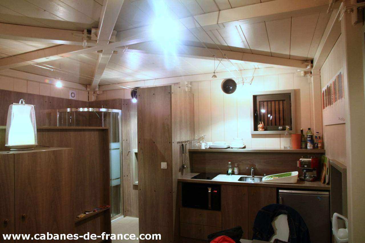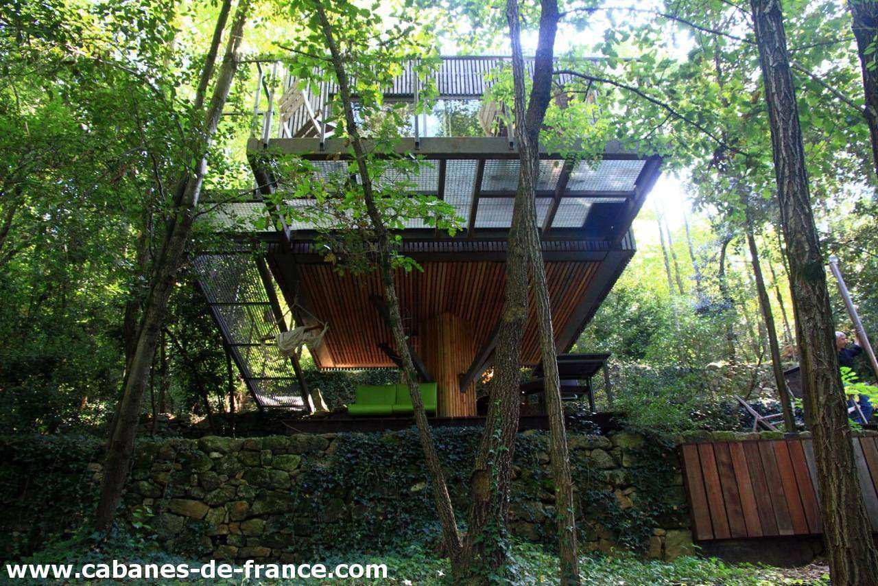 Campée sur son pilotis, avec pour seul décor, chênes, pins, acacias, la cabane perchée est une invitation au calme et à la détente en pleine nature. Une jolie terrasse, un coin cuisine, une salle d’eau ….rien ne manque au confort des hôtes surtout lorsque l’on sait que juste à côté les attendent un sauna et un bain nordique ,chauffé par un poêle à bois , fabriqués tout de bois eux aussi. Vous pourrez ainsi écouter les petits oiseaux chanter en voir passer les biches depuis votre bain ou sous la couette, par la baie vitrée de votre cabane.