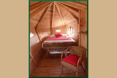 Intérieur : Table, chaises, lits faits, essuie-mains, lave-mains (3 L), toilettes sèches séparées, chauffage selon saison.