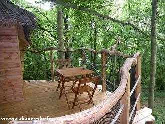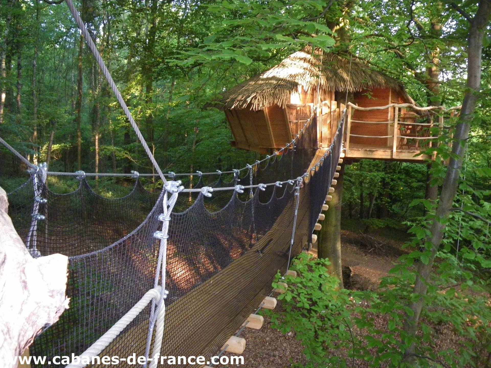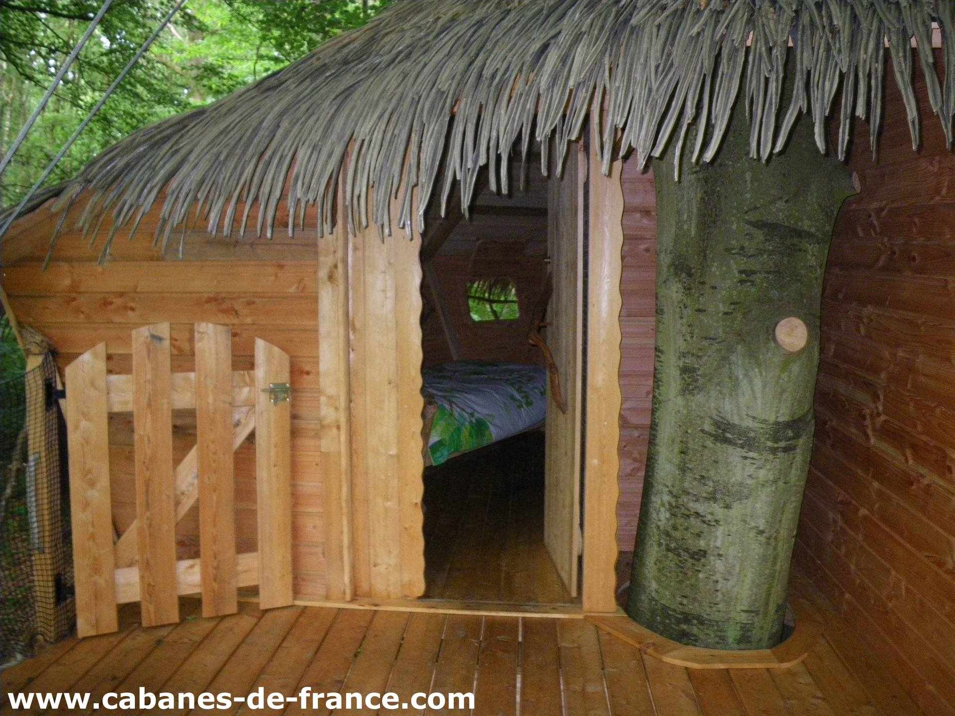 La cabane du “Canyon” doit son nom à la topographie du lieu qui l’accueille en plein cœur du bois. Elle culmine à 5 mètres du sol, son accès à la fois sympathique et simple par un escalier et un pont suspendu en fait une cabane idéale pour les familles avec enfants. L’intérieur est optimisé avec le lit couple dans une alcôve avec vue sur les cimes des arbres.