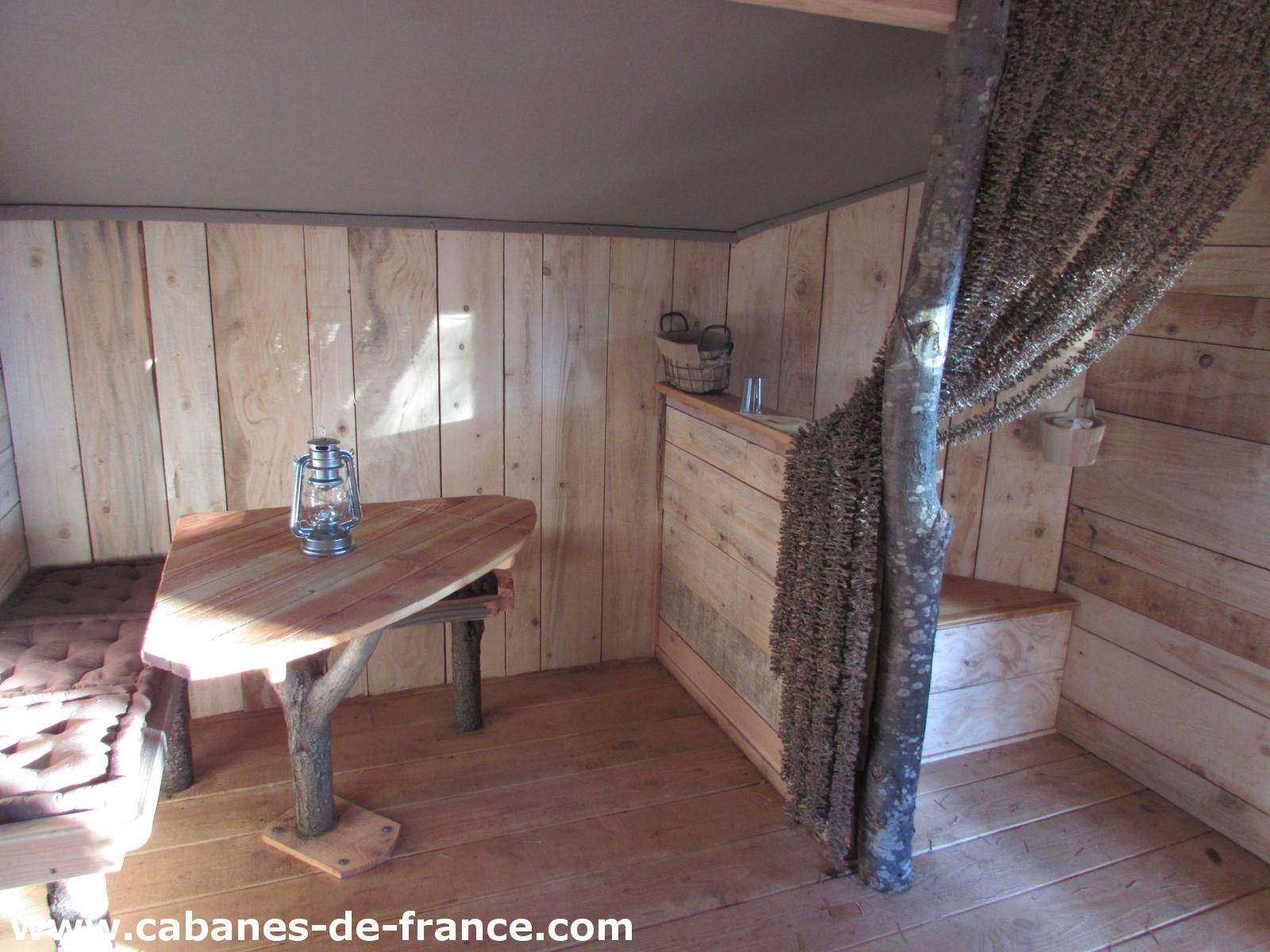 Les 25m² de cette cabane vous donneront tout le confort nécessaire pendant votre séjour. En effet, elle est équipée d’un lit King size (160x200cm) de qualité supérieure, d’une table intérieure avec un banc ainsi que d’une table extérieure pour profiter au maximum du cadre exceptionnel en prenant votre petit déjeuner en terrasse.