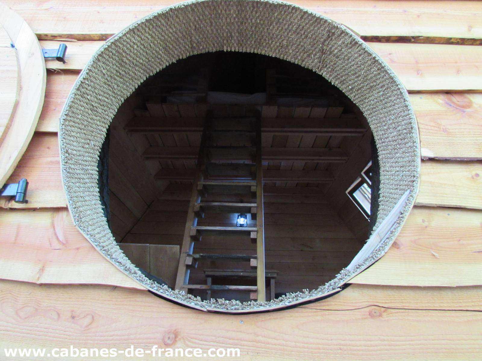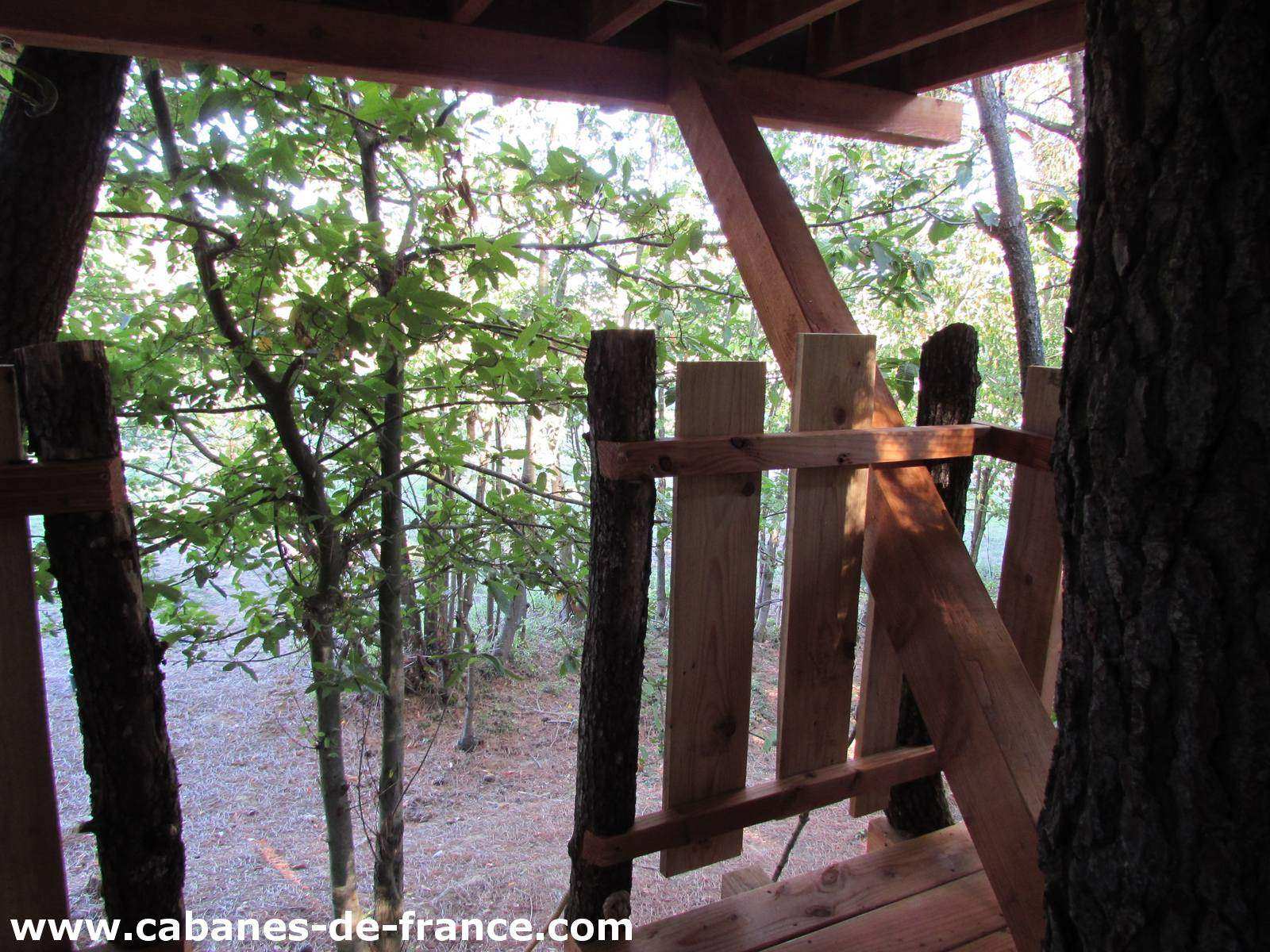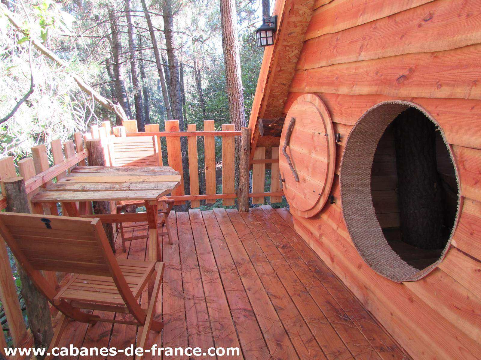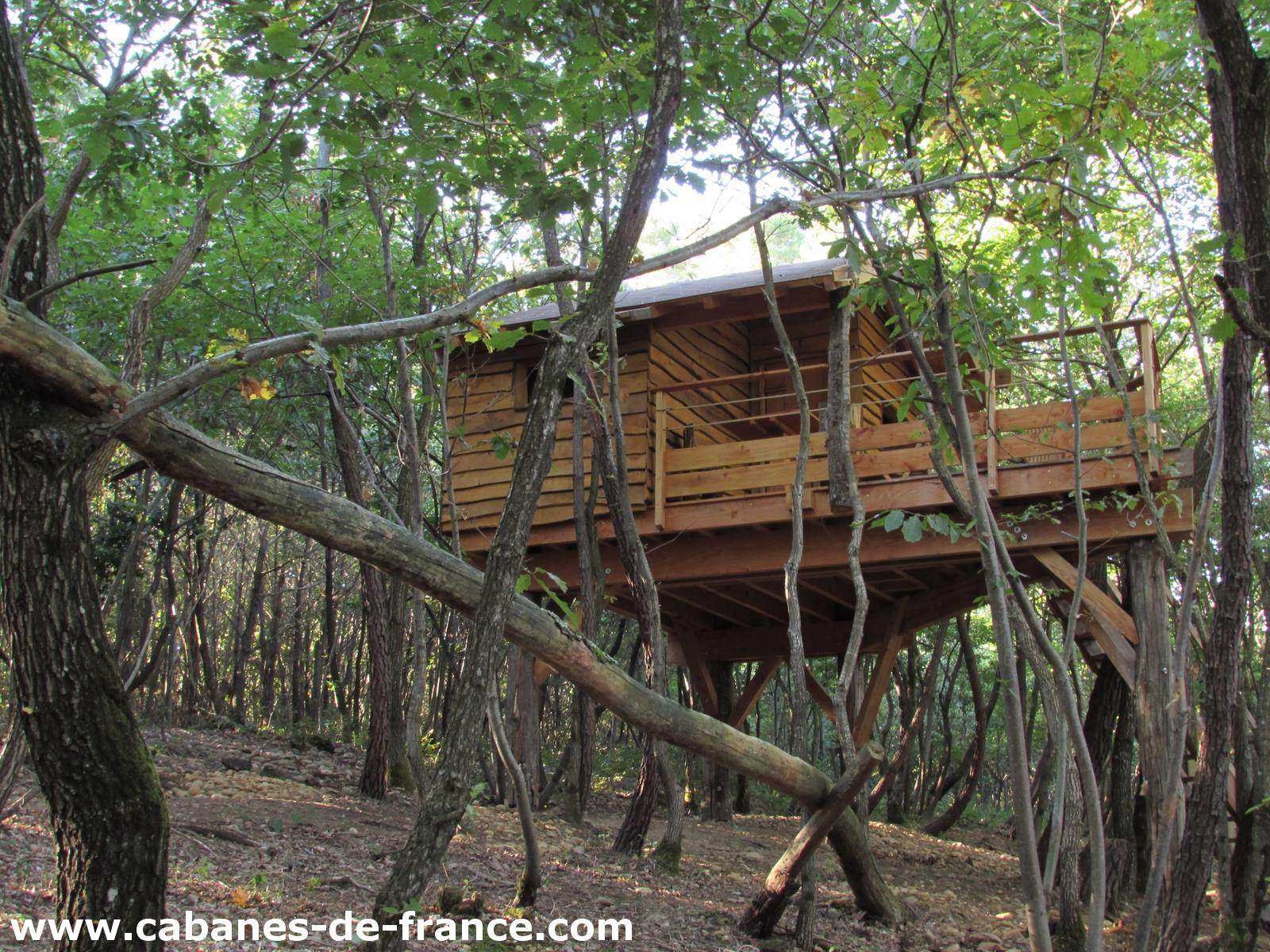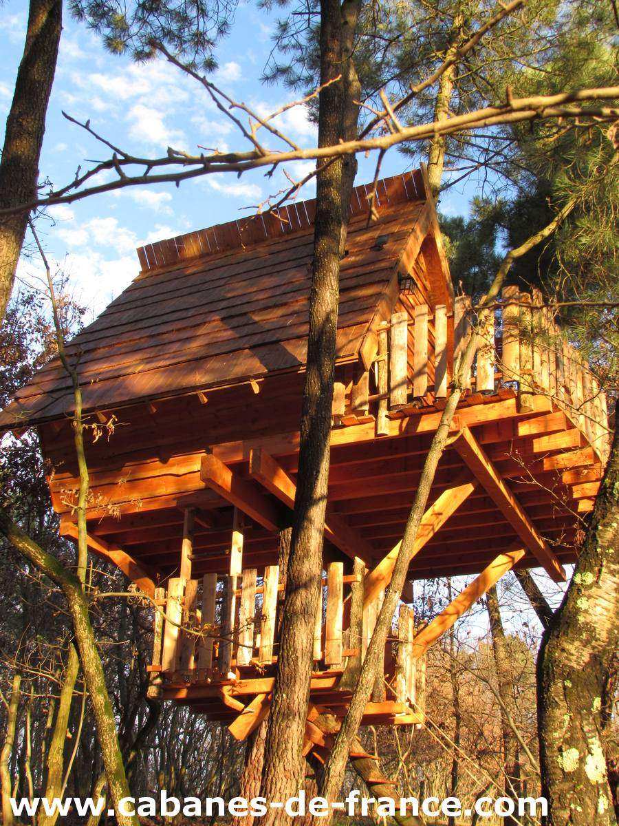 La superficie de cette cabane, équipée d’éclairage LED et solaire, est de 24m² avec un couchage situé à 7 mètres de hauteur, un lit 160x200cm de qualité, des toilettes sèches, une table intérieure et une table extérieure. La cabane est construite en bois de douglas et isolée écologiquement grâce à des fibres de bois afin de profiter de nuits fraîches et confortables. Vous profiterez de toute l’intimité dont vous avez besoin grâce aux terrasses qui sont camouflées dans les branches. La cabane est accessible par une échelle de « papou », une échelle conçue avec des branches (pour les plus téméraires), et un escalier droit menant au couchage.