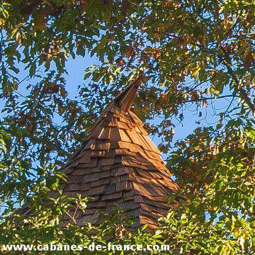 Tendue vers le ciel telle une nef de cathédrale, Parthénope a été conçue pour vous inviter aux rêves de conquêtes aussi lointaines qu’exaltantes. Murs et toiture recouverts de tuiles de châtaigner et de red cedar offrent un dégradé de teintes qui se fondent harmonieusement entre les houpes du Chêne Rouvre. Porte « hobbit », hublots de bateaux et cordages, charpente et boiseries, autant de « détails » insolites qui lui confèrent charme et volupté!