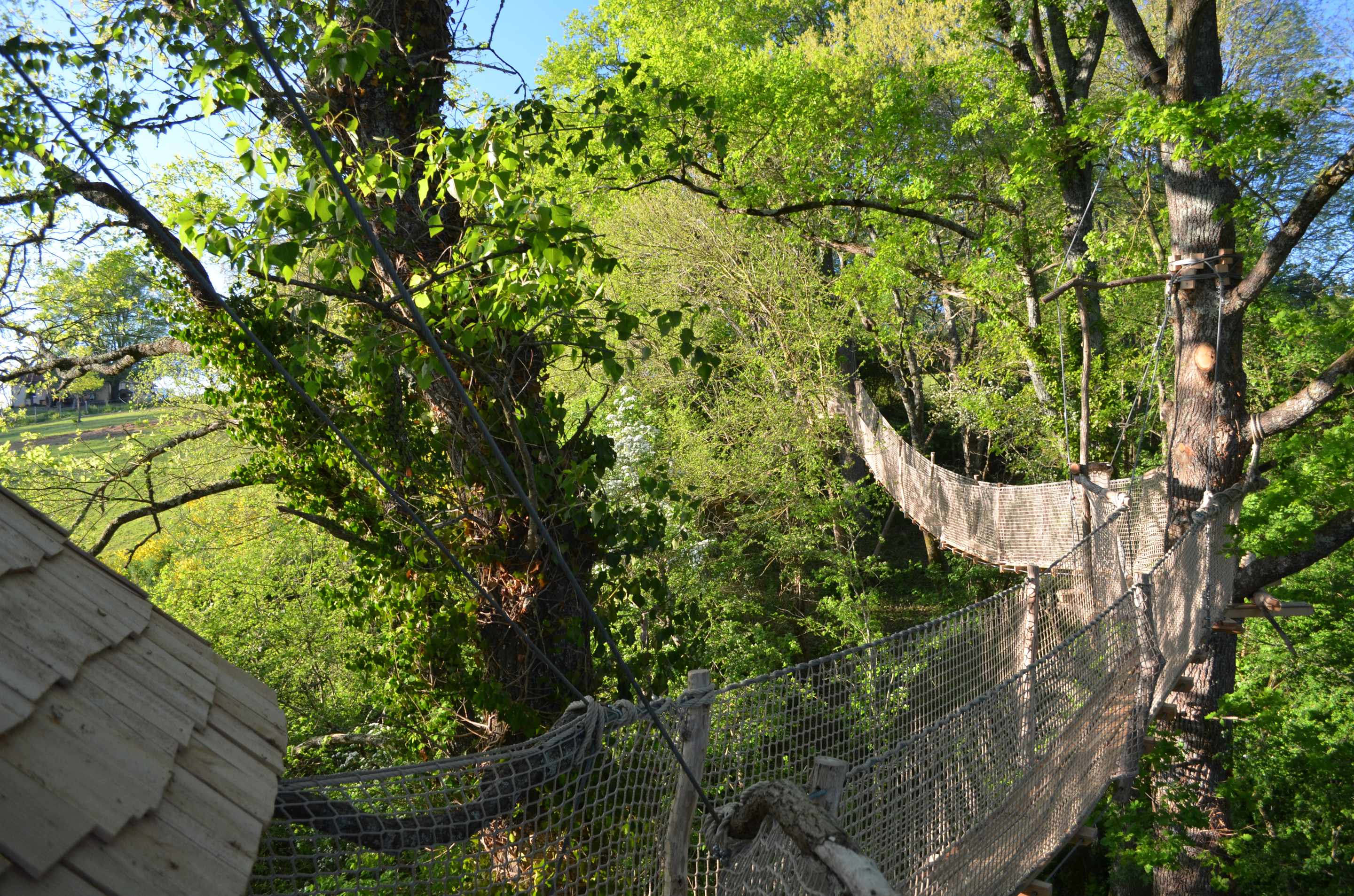 Votre réservation comprend 2 cabanes privatisées rien que pour vous, sur un domaine de 7 hectares de prairies et de bois, pour  passer une nuit à plus de 10m de haut avec un accès par une passerelle suspendue de 40m de long.