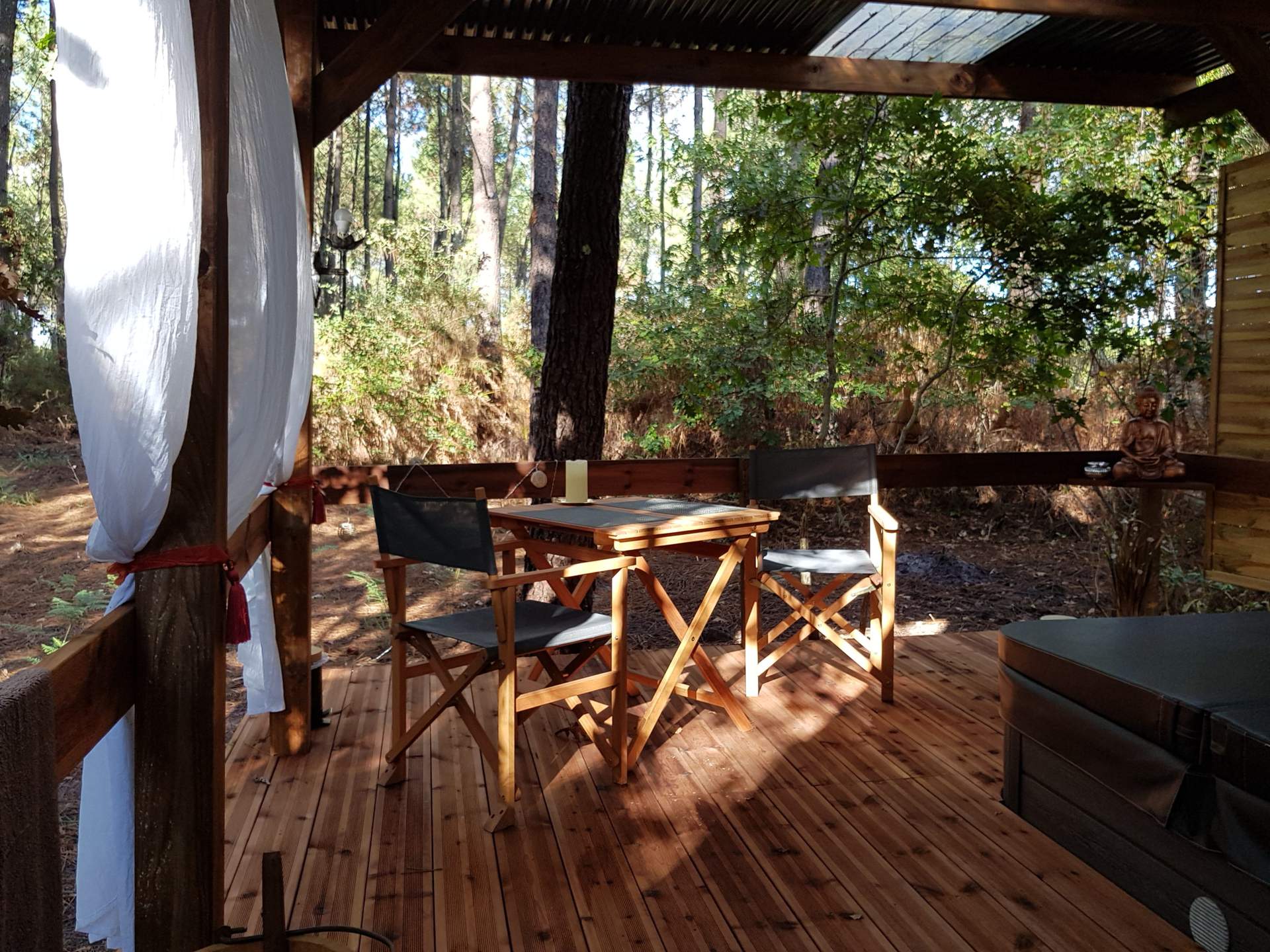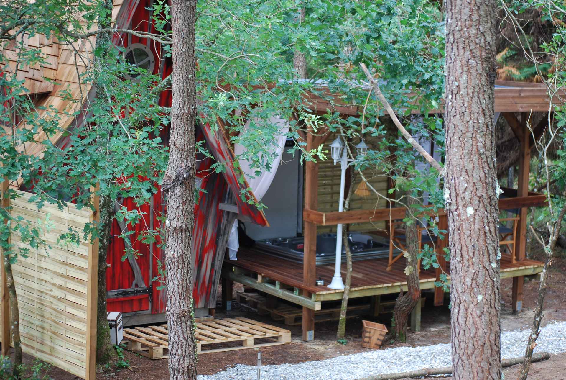 Cabane athypique avec spa privatif sur pilotis, couvert, chauffé toute l’année.