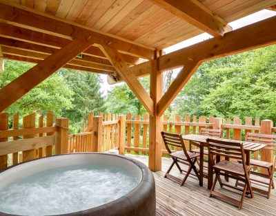 Tout près d’un charme, cette cabane familiale sur pilotis est pour 2 adultes et 2 enfants de moins de 12 ans. Vous accédez à la cabane par un premier escalier. Au premier étage, votre jacuzzi vous attend pour un moment de pure détente. Vous trouverez à ce même étage une jolie salle de bain ainsi que vos toilettes.