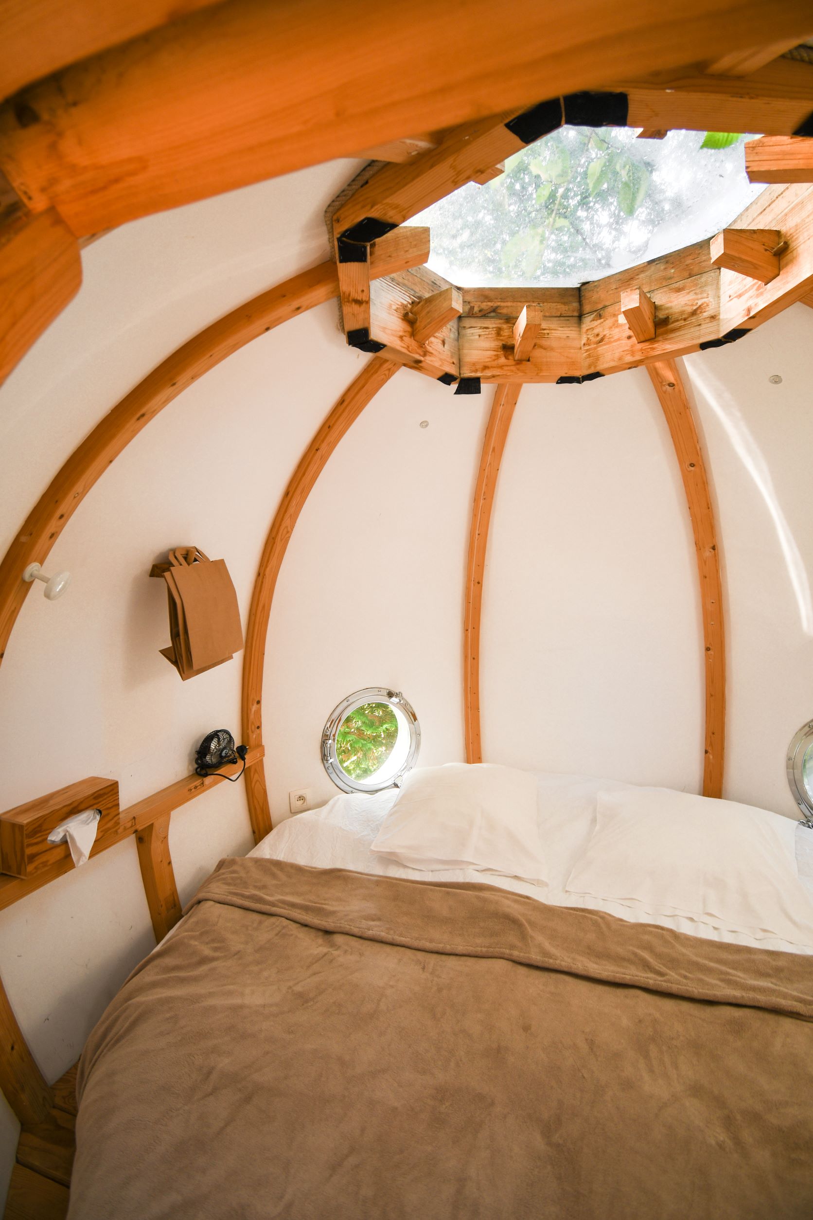 A 5 mètres au milieu des arbres, votre cabane vous attend pour passer une nuit lové dans votre lit rond.