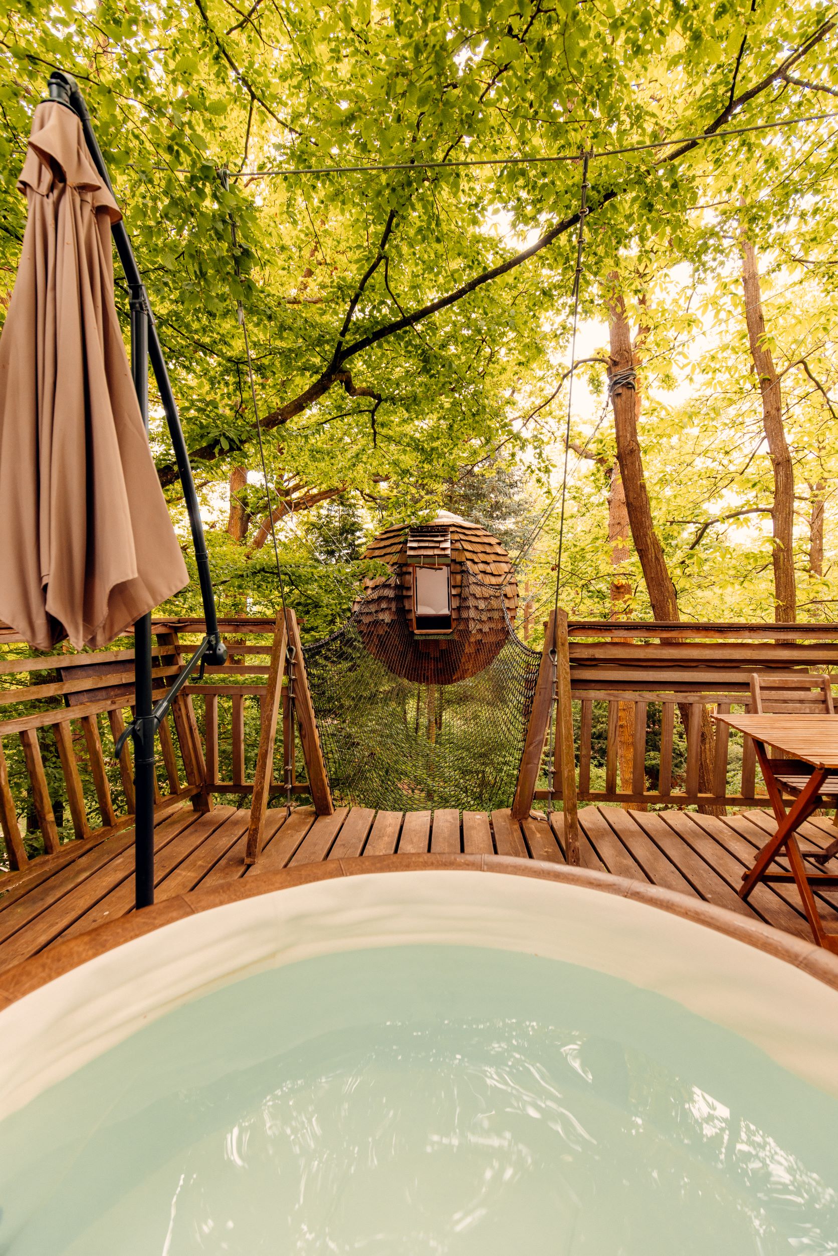 Un nid suspendu entre les arbres avec jacuzzi privé !