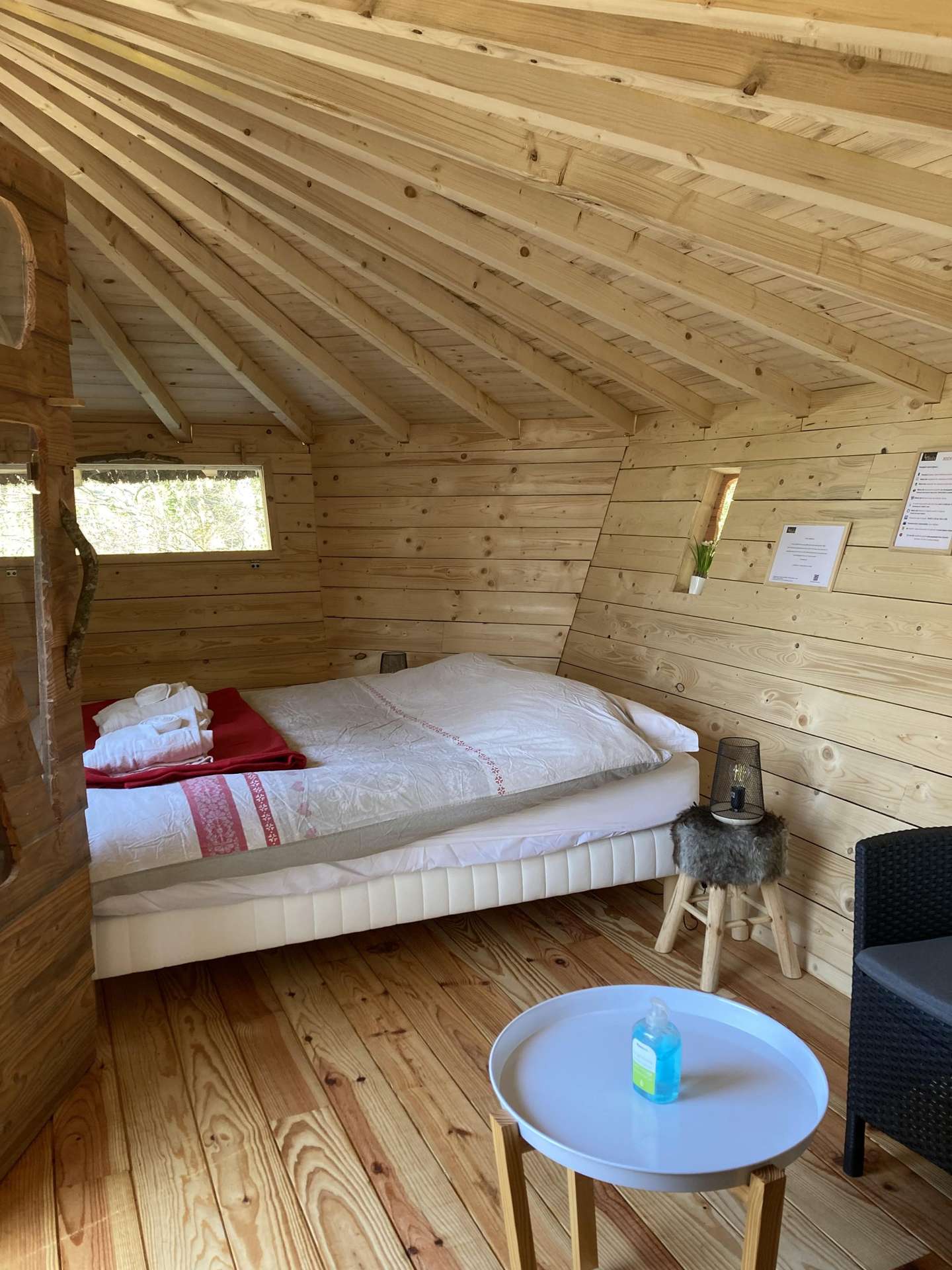 Oui, la voilà à nouveau debout, belle et fière de porter sa nouvelle coiffe : une cabane avec son spa privé (bain nordique à 38°) nommée Prague.