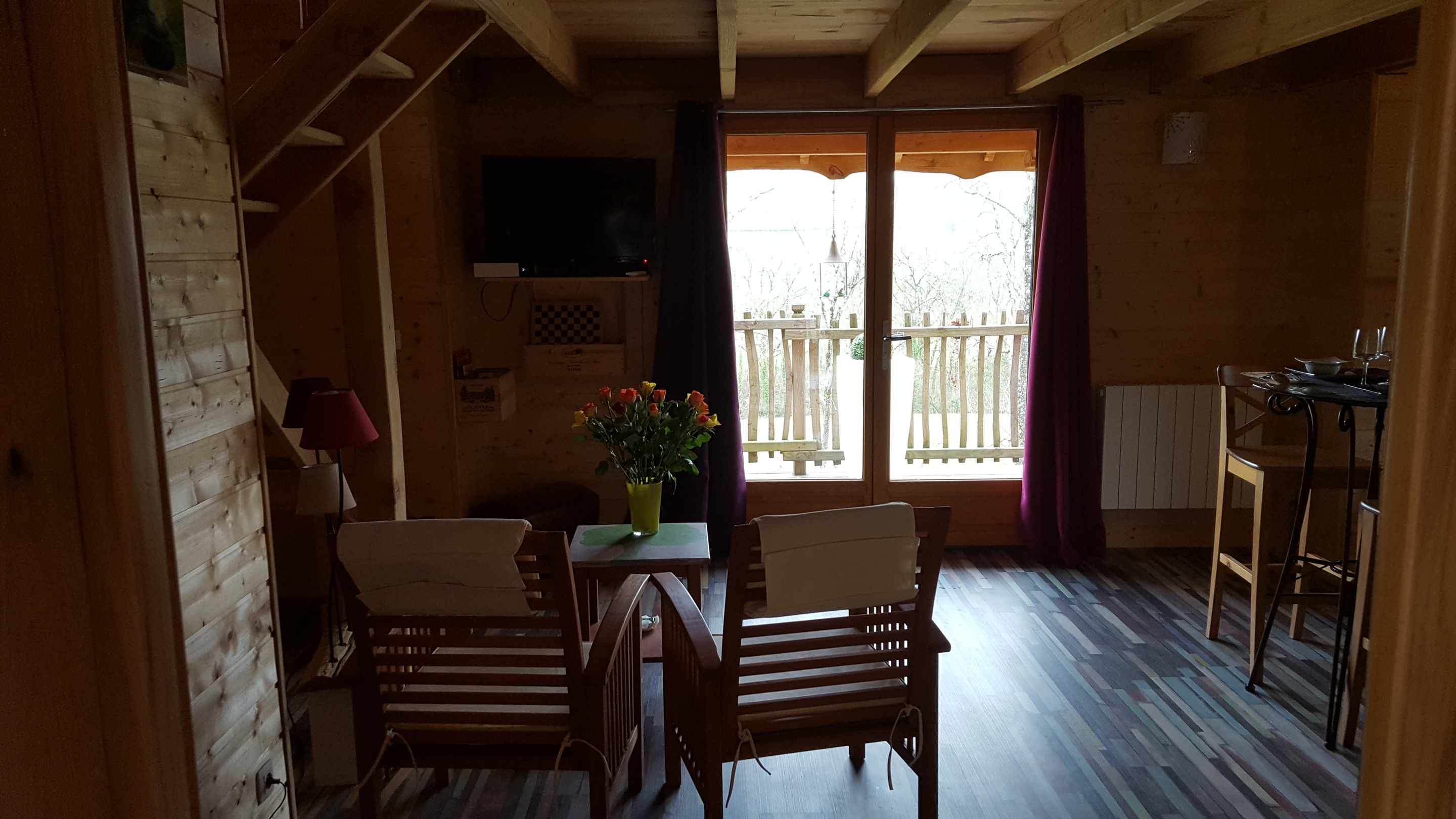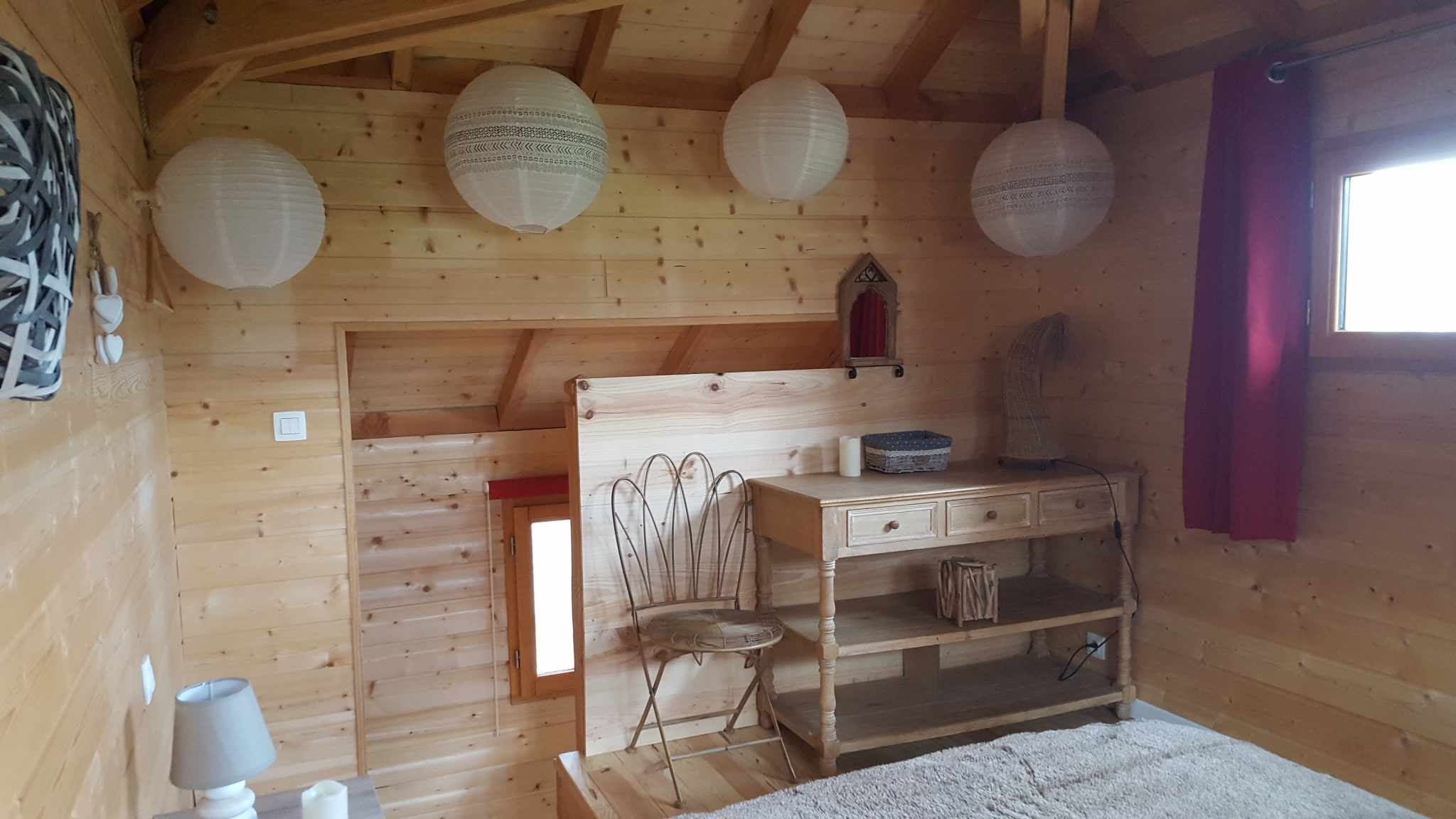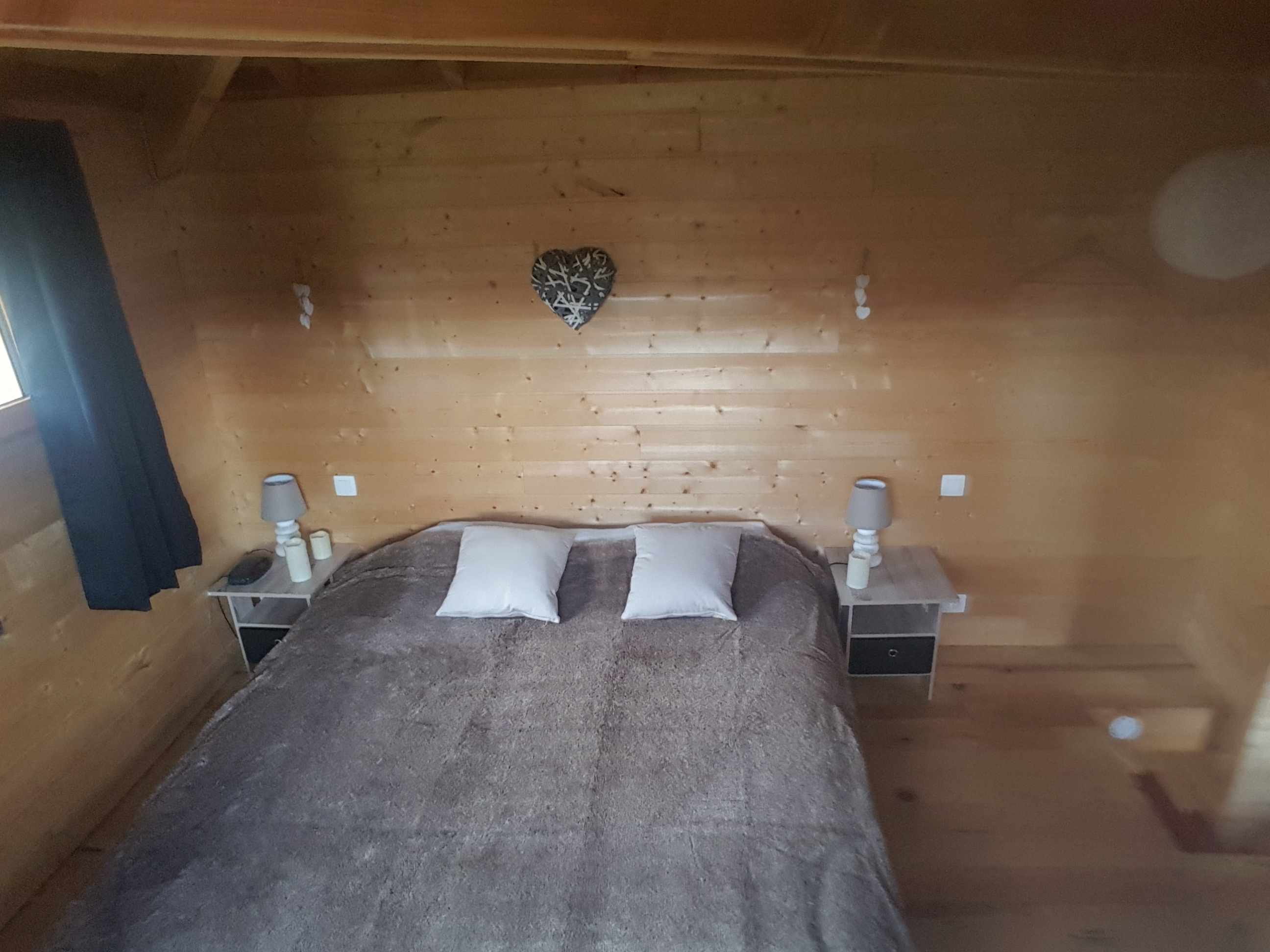 Cabane de 38m2, chambre à l’étage, lit 160 à mémoire de forme aloé vera, cuisine (plaque, micro onde, frigo, théire,nespresso.) Douche italienne,vasque,wc, serviettes, peignoirs,savon bio. Salon avec coin repas, Tv, .Terrasse 20m2, spa et sauna , table avec 2 fauteuils.