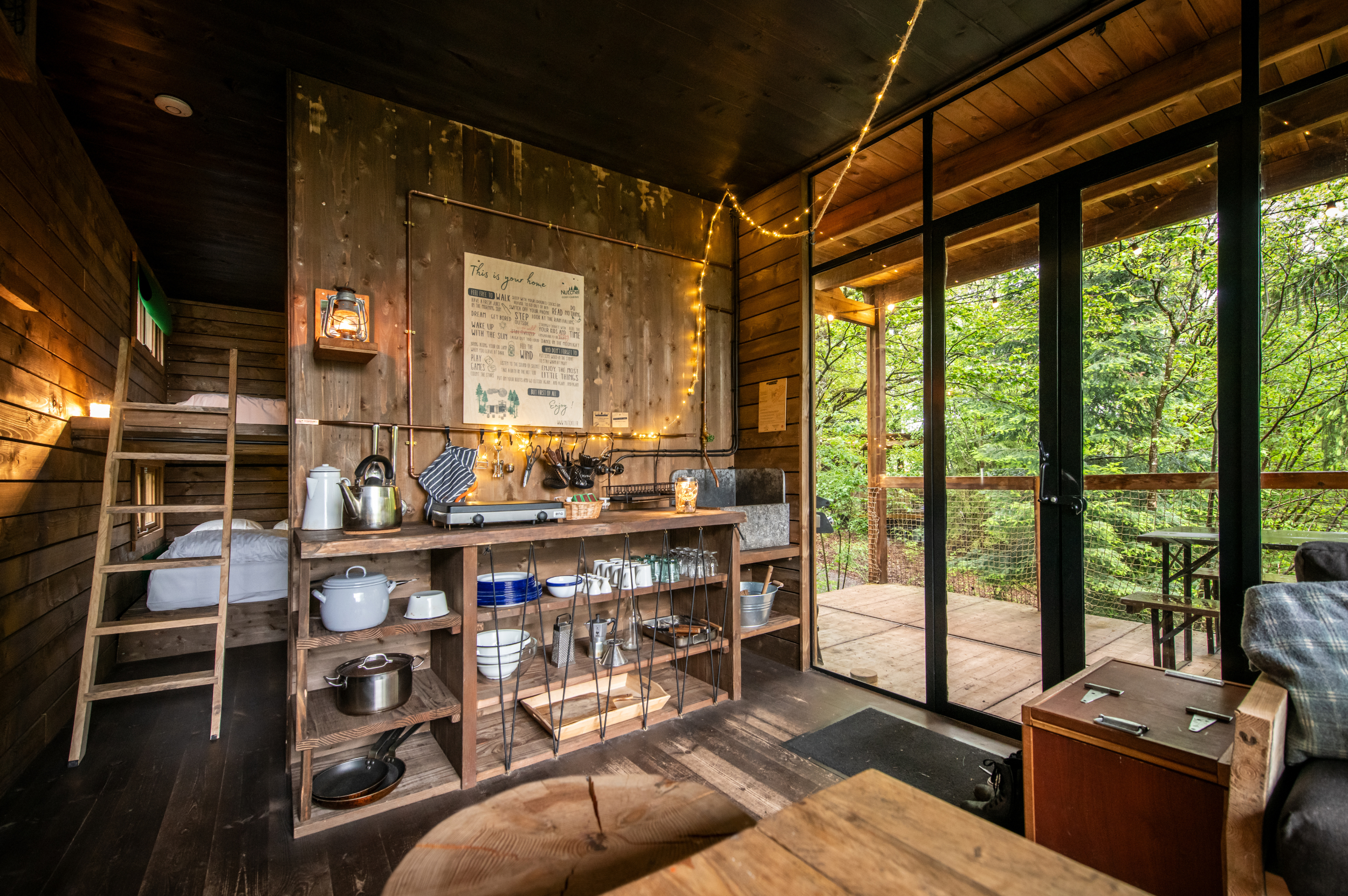 Prenez de la hauteur avec cette cabane unique dotée d’une terrasse sur le toit. Accessible par une échelle ou un escalier, cet espace en plein air vous permet de contempler la cime des arbres, de prendre votre café face au lever du soleil ou de dîner sous les étoiles. Un vrai bol d’air, dans une atmosphère paisible, qui ravira les amoureux de nature et de liberté.
