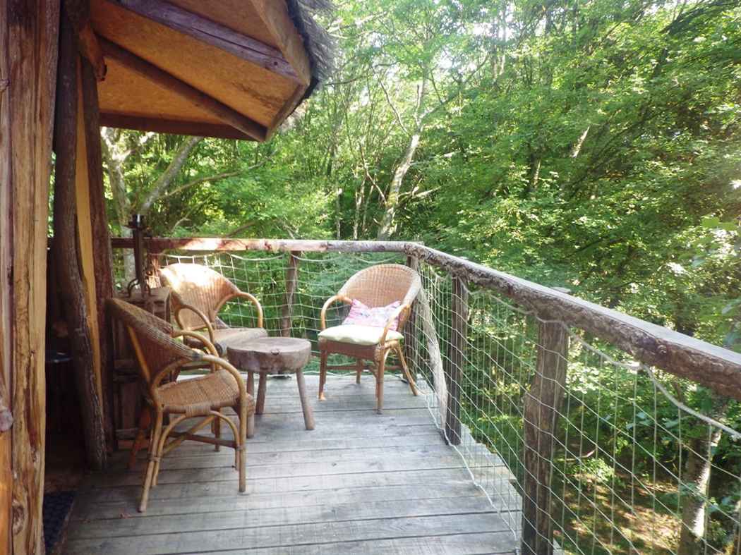 Pour trois personnes, elle est nichée dans un petit bois à l’orée du pré. On y accède par un pont de singe.