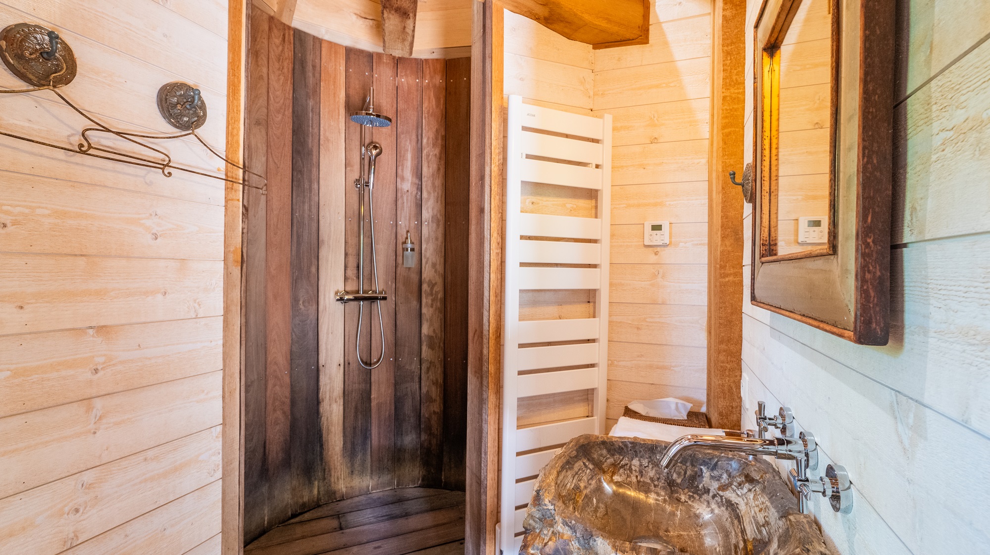 Elle est équipée d’une salle d’eau avec vrais WC.