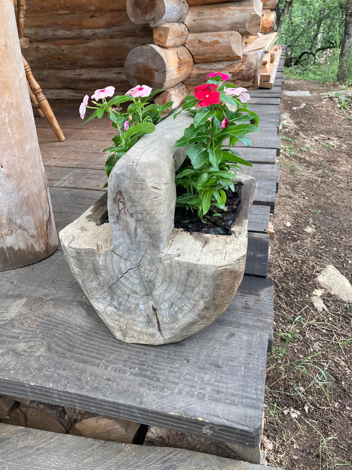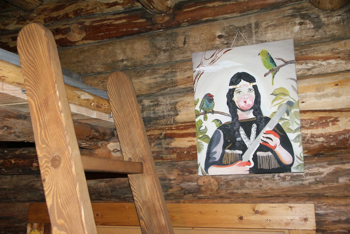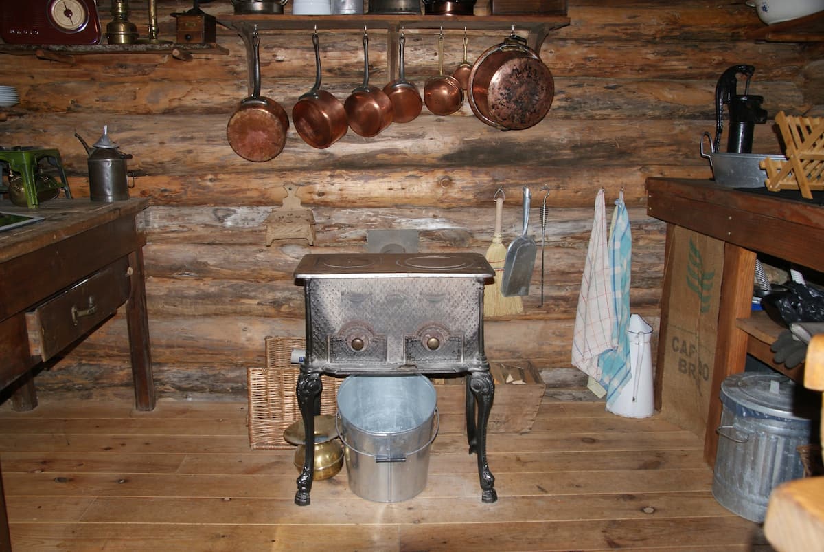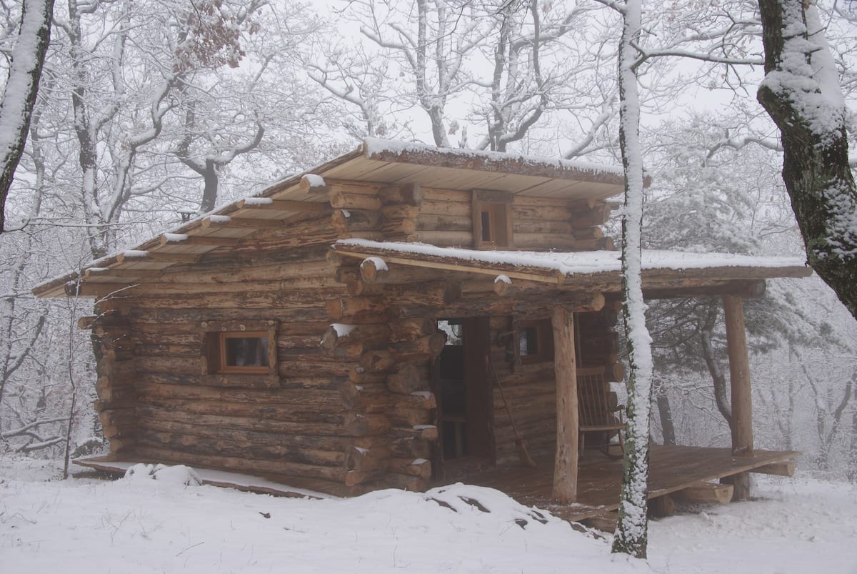 Une véritable cabane construite en fuste et une authentique tente de trappeur chauffées par des poêles à bois.