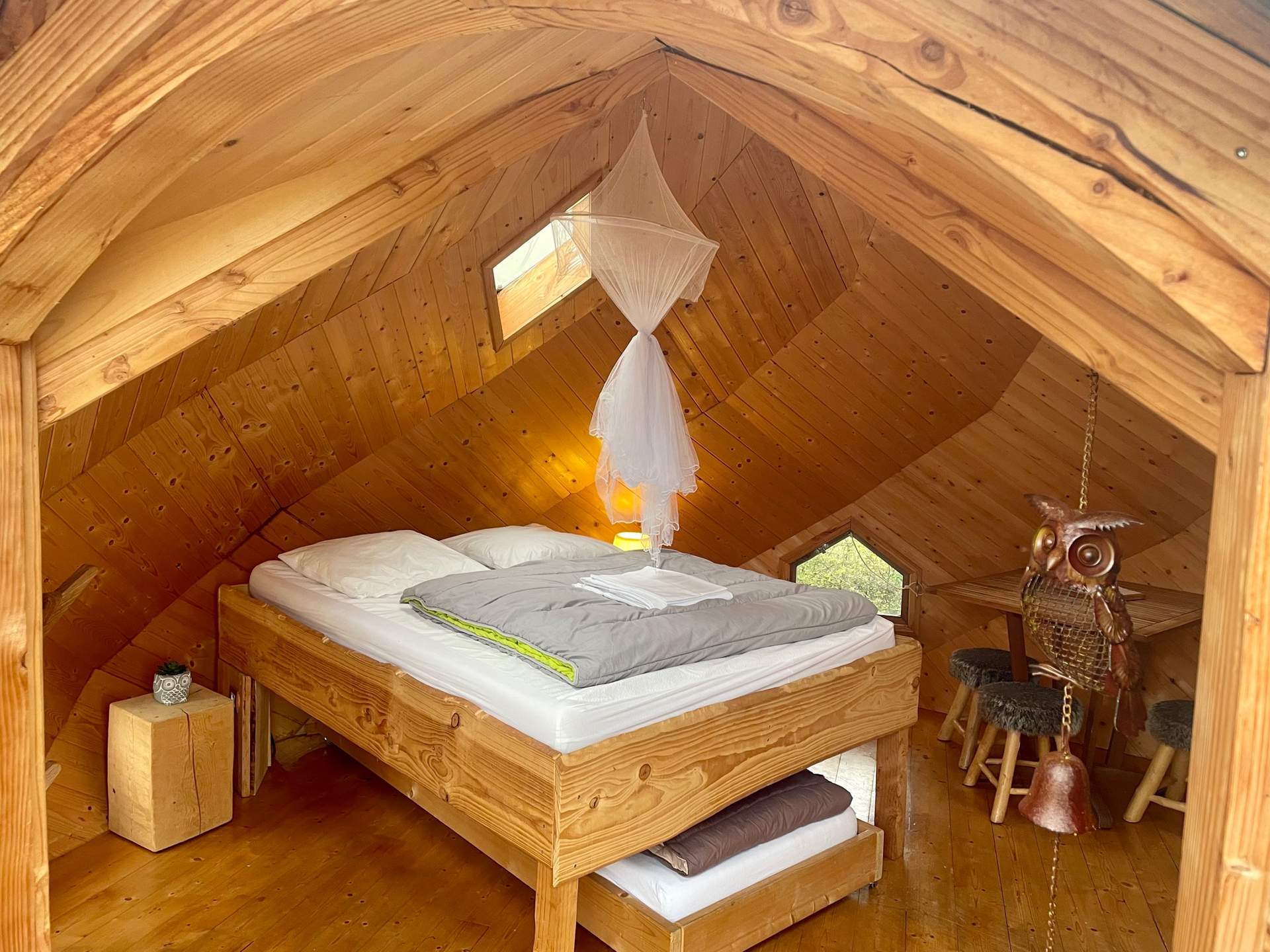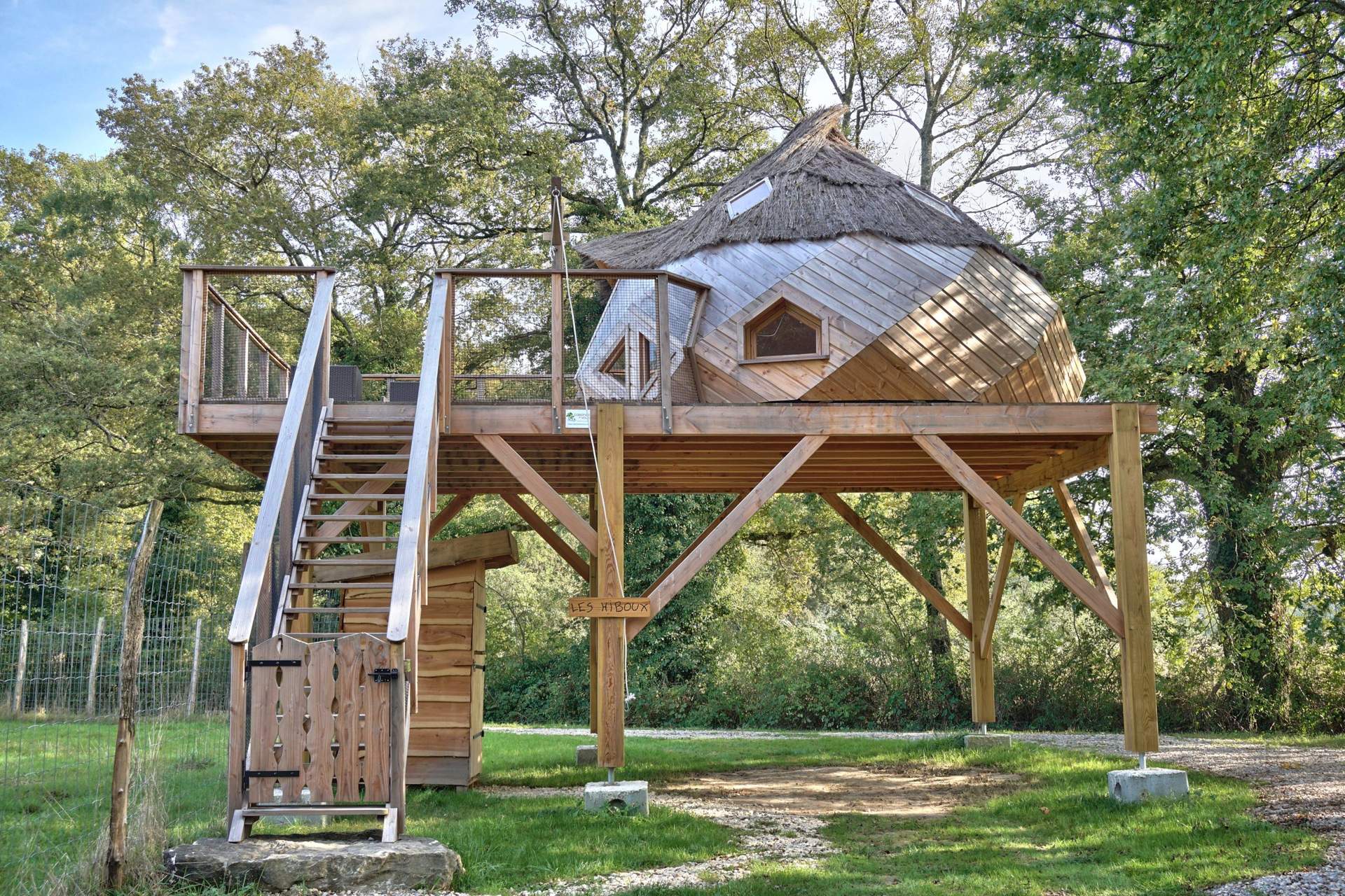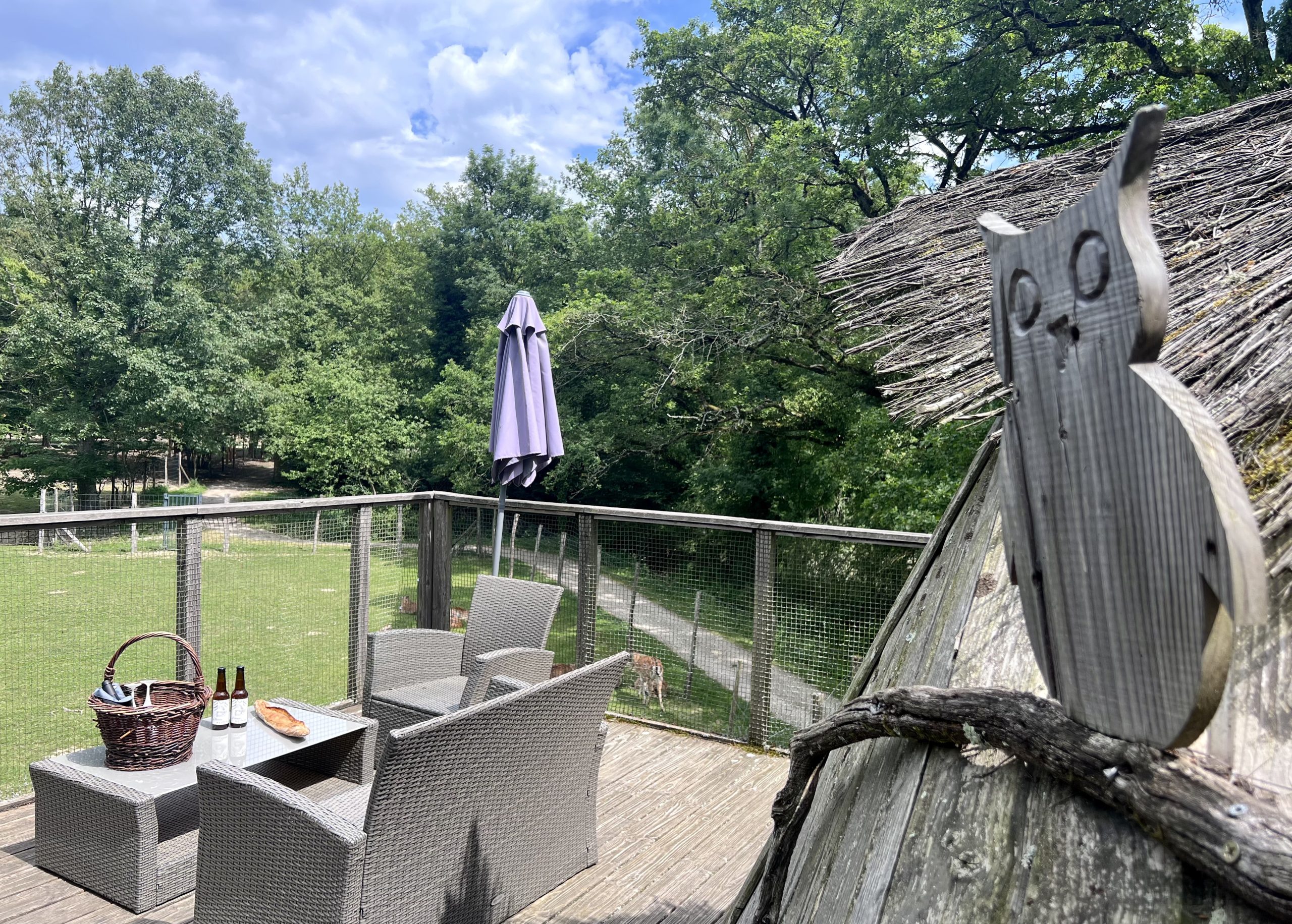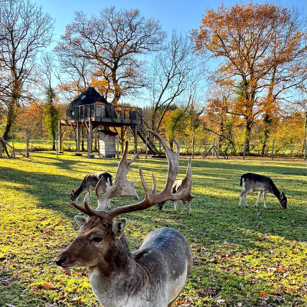 Venez découvrir cette cabane perchée au milieu des animaux. Le Cocon perché des hiboux pour 2 à 3 personnes, est un lodge Confort équipé d’électricité et de toilettes sèches. Appréciez sa splendide terrasse au dessus du parc des Cerfs et des Daims.