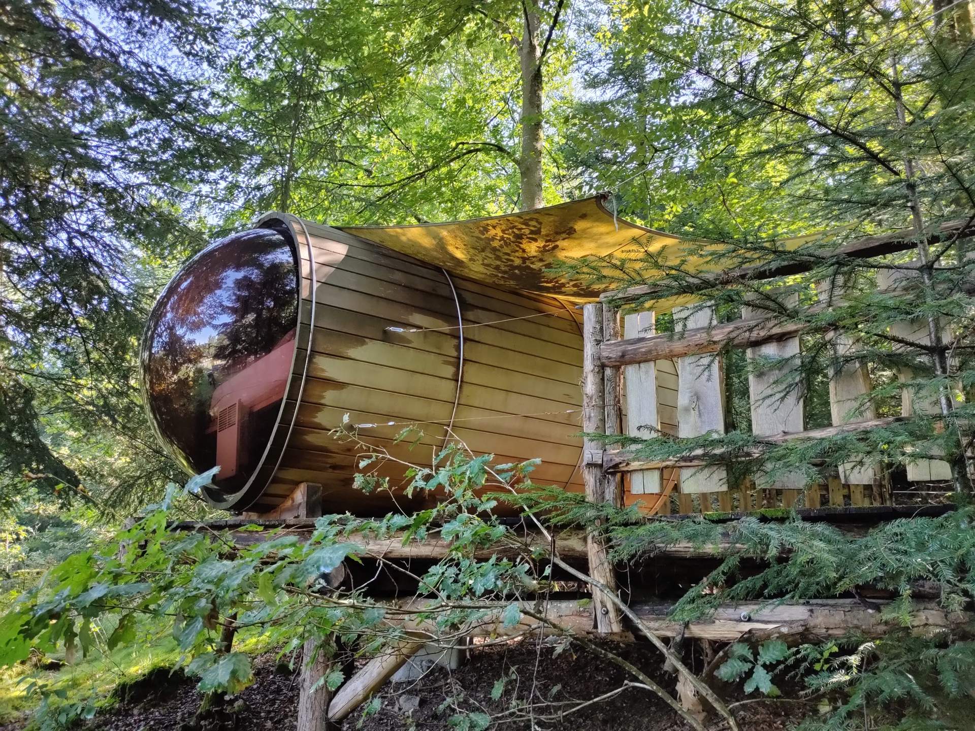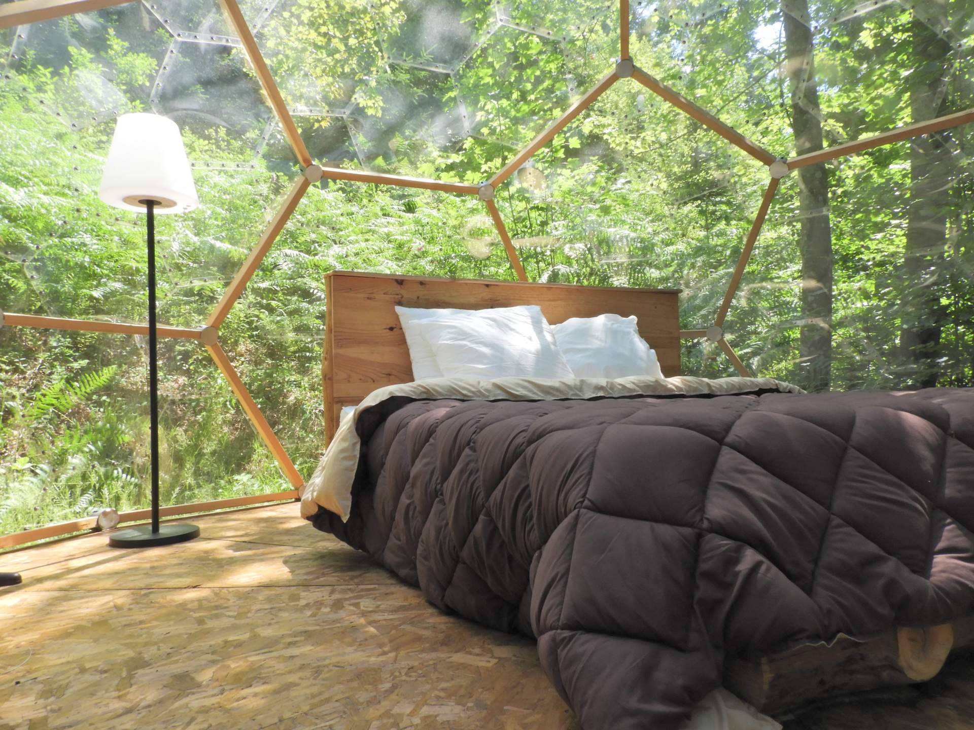 Hébergement insolite pour 2 personnes, le Crystal Dôme vous accueille pour une nuitée au plus près des étoiles, au milieu des arbres d’ou vous bénéficierez d’une vue imprenable sur la vallée.