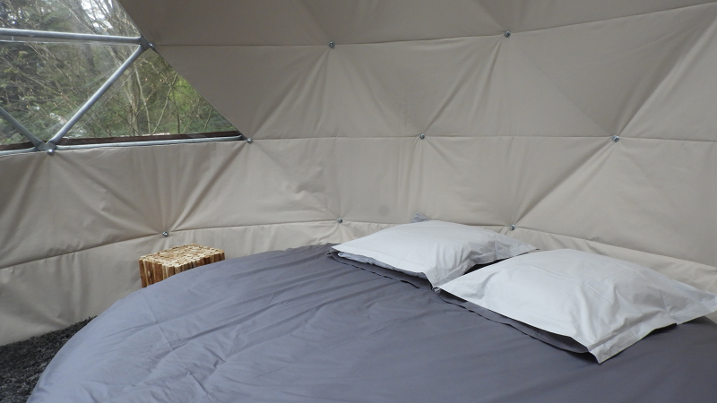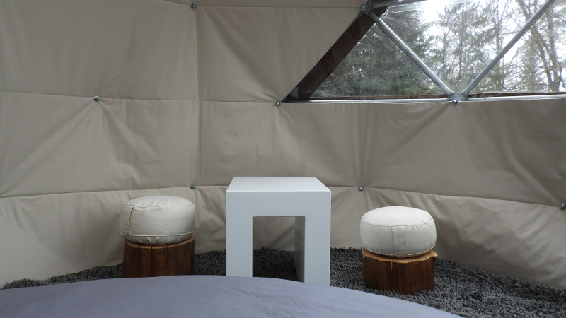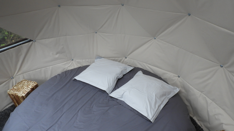 A l’intérieur vous disposerez d’un lit rond (draps fournis), d’un tapis moelleux et d’un espace pour vous poser.