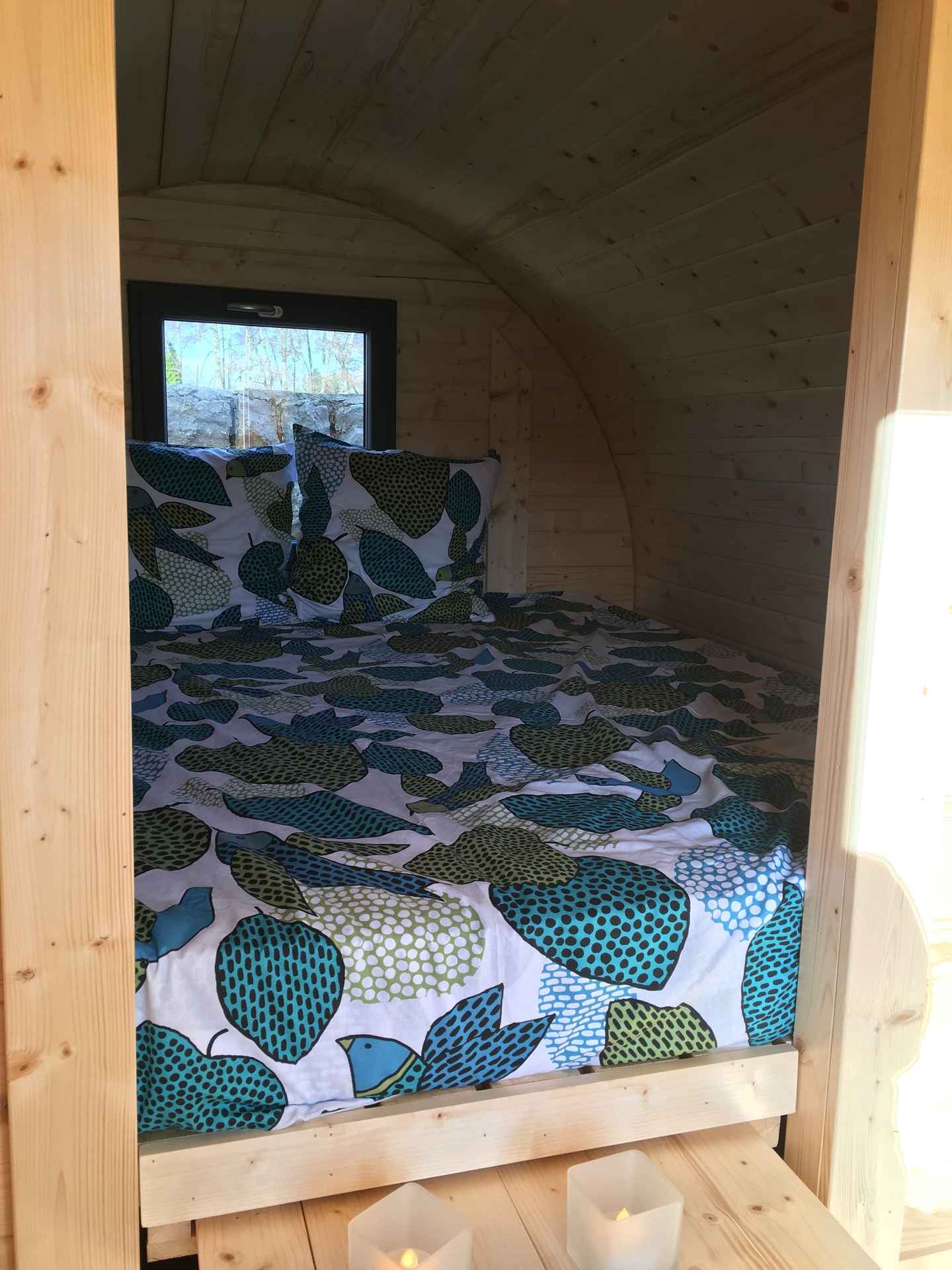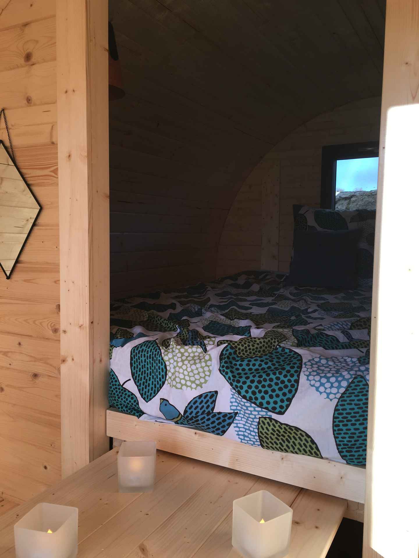 Venez ressentir cette ambiance très cocooning dans un lit XXL. Les tonneaux possèdent l’électricité et sont chauffés l’hiver.