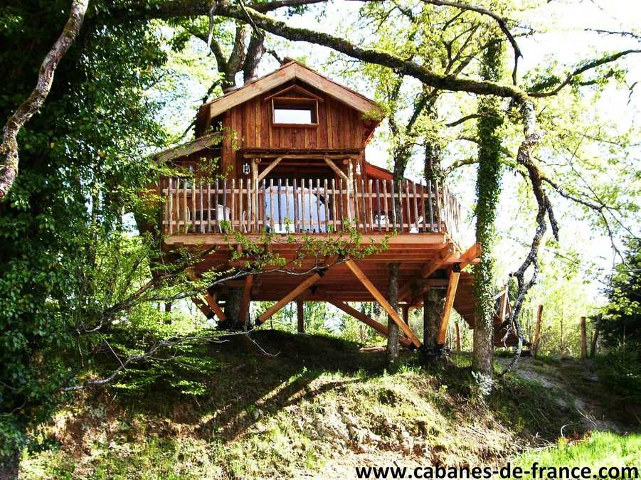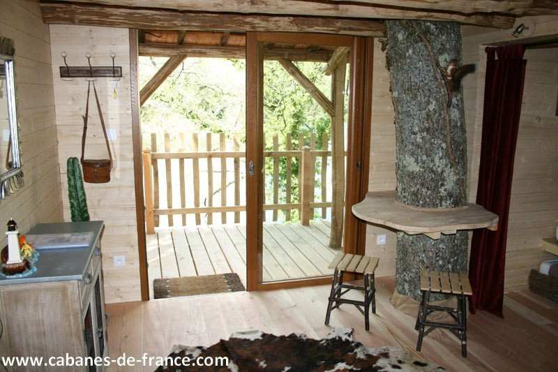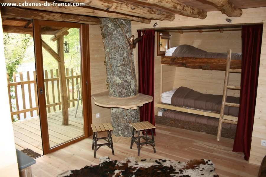 La Cabane aux Trois Chênes est une cabane Familiale de 18 m² d’une capacité de 5 personnes, perchée à 5 mètres et accessible par un pont de singe, et avec une terrasse de 21 m².