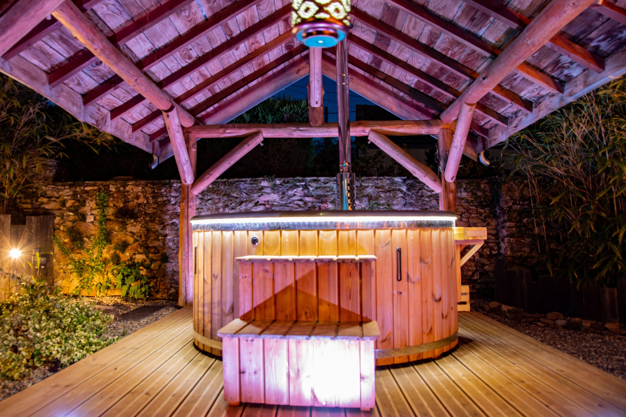Une nuit magique dans un univers insolite au cœur de l’Aveyron… Vous séjournez dans une cabane tout confort en fuste perchée dans la campagne Aveyronnaise. Idéal pour un séjour romantique, la bain nordique écologique chauffé au feu de bois n’attend que vous et votre moitié pour un instant détente à 38° sous les étoiles …
