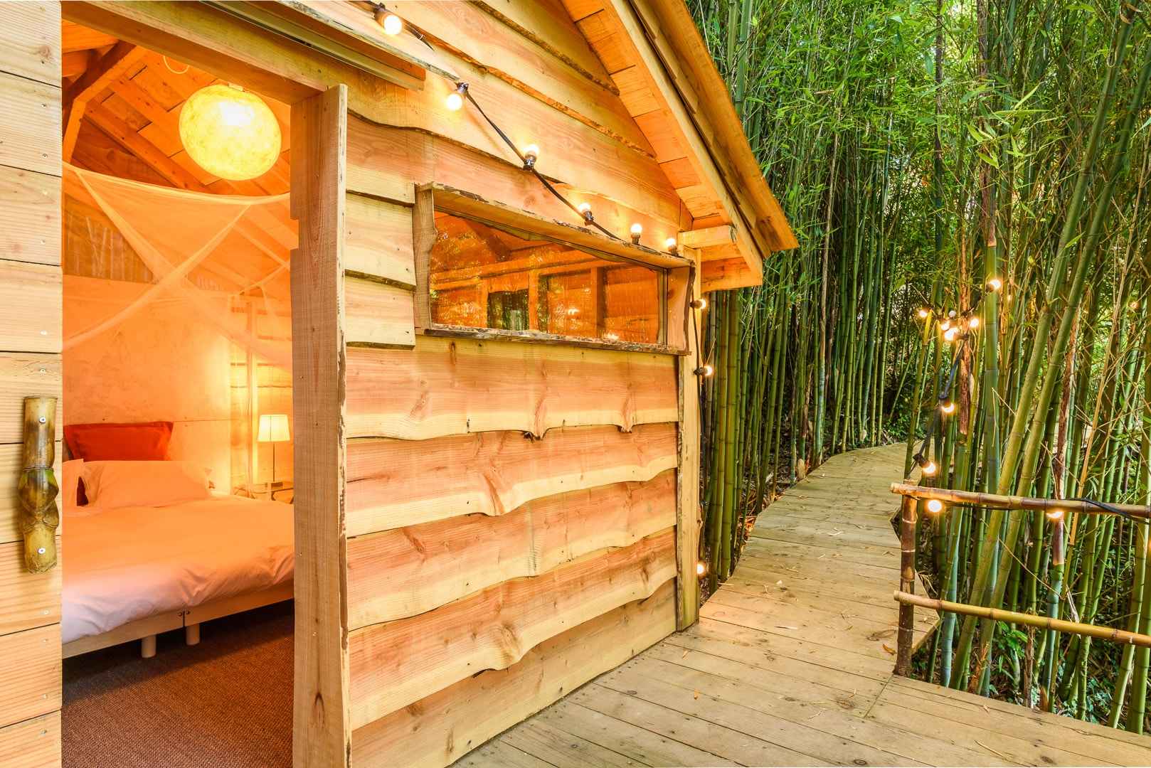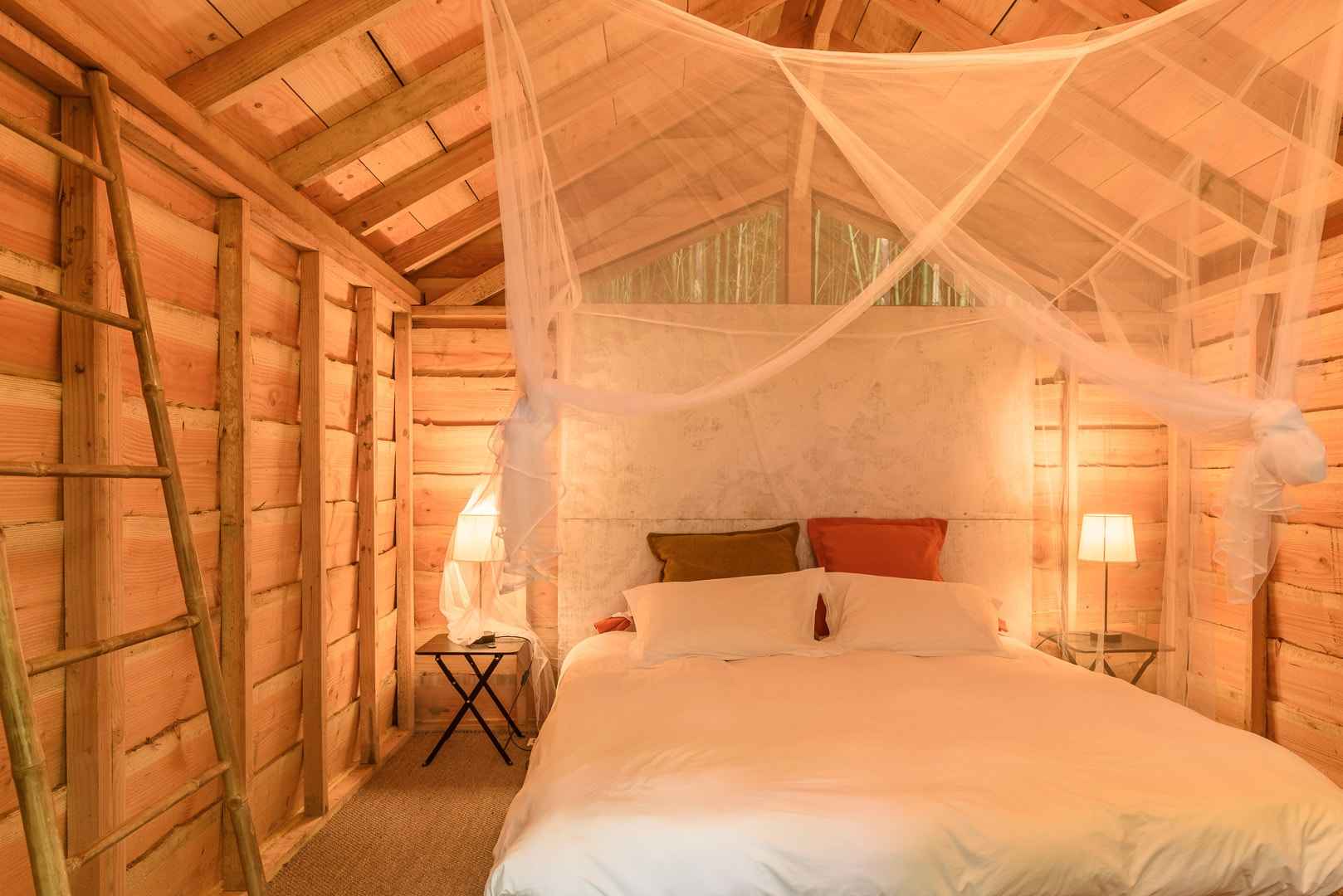 Equipée d’un grand lit confortable queen size (180 cm), terrasse au cœur des bambous et dépaysement garanti… La cabane possède une isolation et est chauffée en hiver.